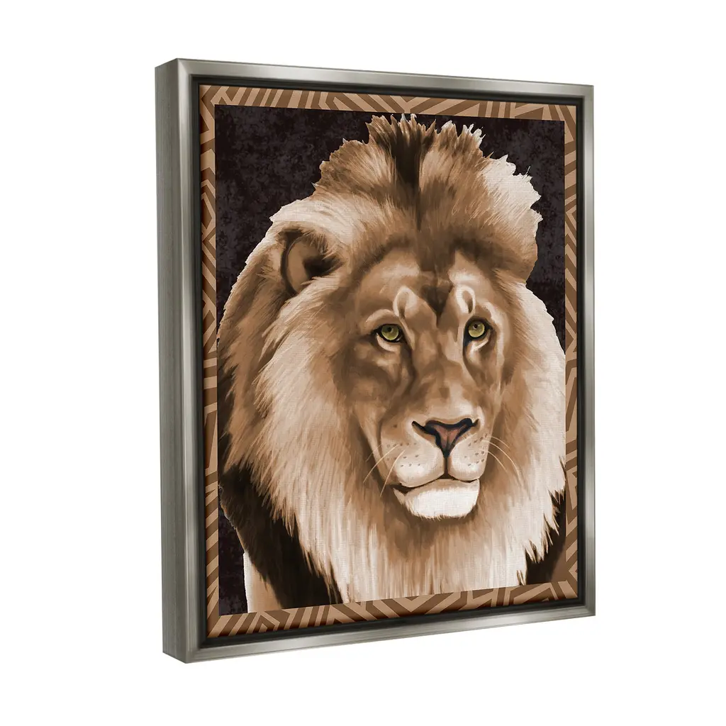 Elevate your home or office to the next level with Stupell Framed Floating Canvas Wall Art. Our premium hand-stretched canvas is mounted securely into a sturdy lightweight frame. The museum-style gap between the wrapped canvas and the box frame gives the illusion of floating artwork. Stupell Wall Art is made in the USA.Features: Dimensions: 17 x 1.7 x 21 Frame, 16 x 1.5 x 20 Canvas ArtFloating Frame Canvas Products are available in sizes 17"x21" and 25"x31". All Floating Frame Canvas Products have a 1.7" Depth.Wall Art is Ready to Hang with Hardware Free Hanging. No Installation required. For Easy Set Up Lean or Layer Artwork on Shelf or Against Wall. Artwork is Permently Fixed into the Frame.Our elevated 1.7" Thick Floating Frame is the perfect complement to our canvas style Wall Art. We use only the highest quality inks in house with industry leading printing solutions. Canvas is hand stretched over a durable wood foundation and then mounted securly into a Modern Box Frame. Made in the USA.Artwork Relates To: Animal, Lion, Mammal, Wildlife, Abstract, Modern, Geometric, PatternDesign by Lucca Sheppard