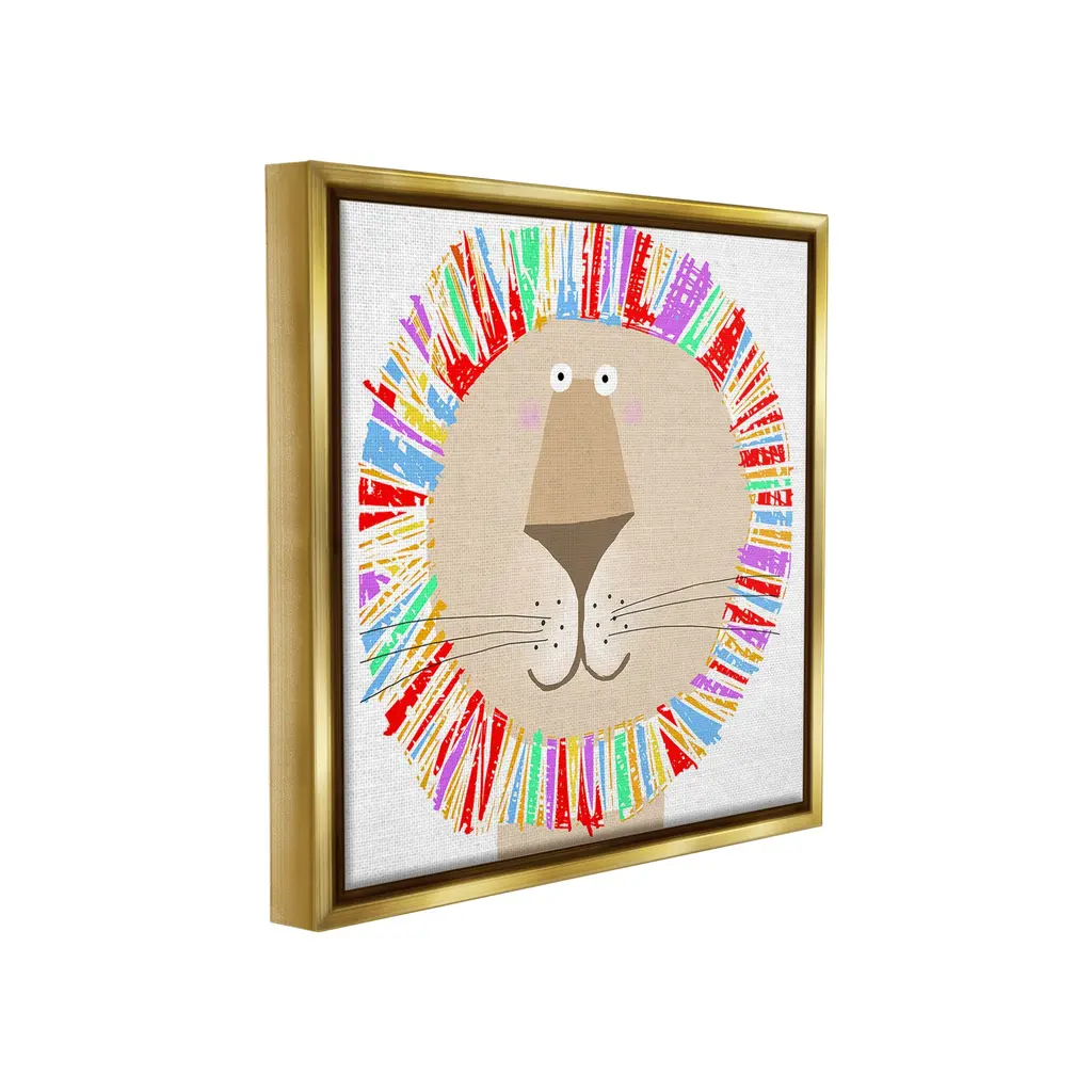 Elevate your home or office to the next level with Stupell Framed Floating Canvas Wall Art. Our premium hand-stretched canvas is mounted securely into a sturdy lightweight frame. The museum-style gap between the wrapped canvas and the box frame gives the illusion of floating artwork. Stupell Wall Art is made in the USA.Features: Dimensions: 18 x 1.7 x 18 Frame, 17 x 1.5 x 17 Canvas ArtFloating Frame Canvas Products are available in sizes 18"x18" and 25"x25". All Floating Frame Canvas Products have a 1.7" Depth.Wall Art is Ready to Hang with Hardware Free Hanging. No Installation required. For Easy Set Up Lean or Layer Artwork on Shelf or Against Wall. Artwork is Permently Fixed into the Frame.Our elevated 1.7" Thick Floating Frame is the perfect complement to our canvas style Wall Art. We use only the highest quality inks in house with industry leading printing solutions. Canvas is hand stretched over a durable wood foundation and then mounted securly into a Modern Box Frame. Made in the USA.Artwork Relates To: Animal, Cartoon, Wildlife, Jungle, Minimal, Whimsical, LionDesign by Carla Daly