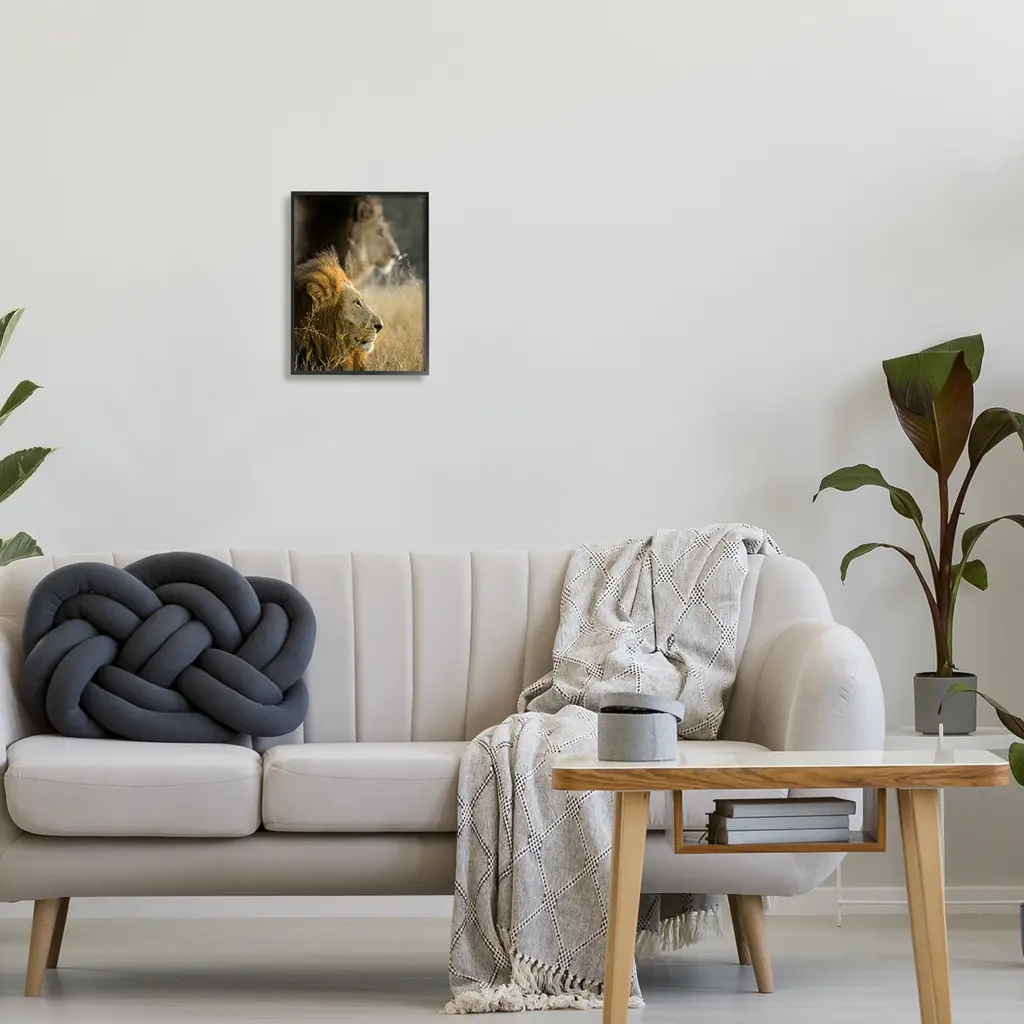 Add dimension to any room with our textured Framed Giclee Artwork. Our framed artwork is securely mounted into a 1.5-inch thick wood grain frame and ready to hang. Frames are available in three alluring styles: black, gray farmhouse and white. In addition, you should check out our oversized options if you want a statement piece. Stupell Wall Art is made in the USA.Features: Dimensions: 11 x 1.5 x 14 FramedFramed Giclee Sizes Include Standard: 11 x 1.5 x 14 Large: 16 x 1.5 x 20 Oversized: 24 x 1.5 x 30Wall Art is Ready to Hang - No Installation or Hardware Needed. For Easy Set Up Lean or Layer Artwork on Shelf or Against Wall.Our giclée prints are carefully mounted on a durable MDF backing, and then perfectly finished in a 1.5 inch thick woodgrain frame. Mounted frame colors include black, gray farmhouse and white. Made In USA.Artwork Relates To: Animal, Lion, Mammal, Wildlife, Savanna, PhotographyDesign by Danita Delimont
