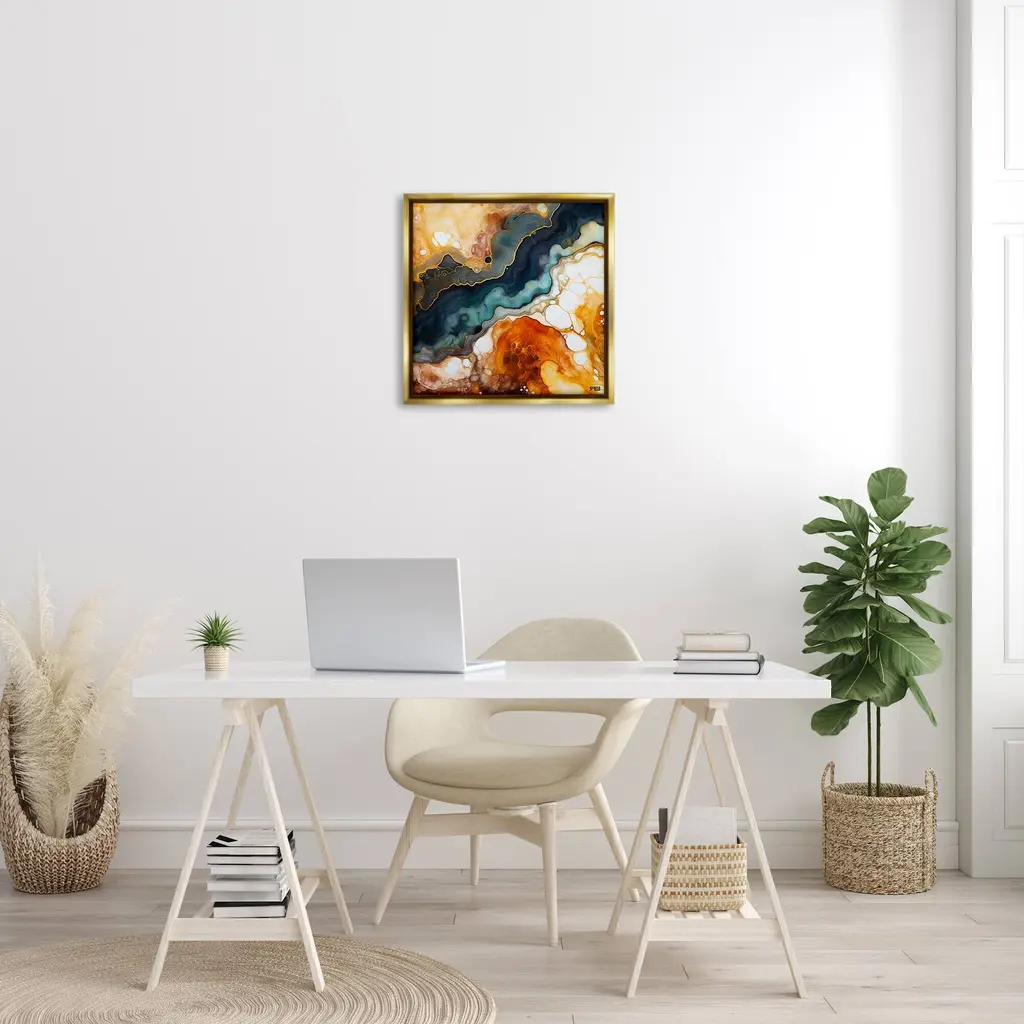 Elevate your home or office to the next level with Stupell Framed Floating Canvas Wall Art. Our premium hand-stretched canvas is mounted securely into a sturdy lightweight frame. The museum-style gap between the wrapped canvas and the box frame gives the illusion of floating artwork. Stupell Wall Art is made in the USA.Features: Dimensions: 18 x 1.7 x 18 Frame, 17 x 1.5 x 17 Canvas ArtFloating Frame Canvas Products are available in sizes 18"x18" and 25"x25". All Floating Frame Canvas Products have a 1.7" Depth.Wall Art is Ready to Hang with Hardware Free Hanging. No Installation required. For Easy Set Up Lean or Layer Artwork on Shelf or Against Wall. Artwork is Permently Fixed into the Frame.Our elevated 1.7" Thick Floating Frame is the perfect complement to our canvas style Wall Art. We use only the highest quality inks in house with industry leading printing solutions. Canvas is hand stretched over a durable wood foundation and then mounted securly into a Modern Box Frame. Made in the USA.Artwork Relates To: Abstract, Modern, Contemporary, Pattern, Liquid, Geode, AgateDesign by RB