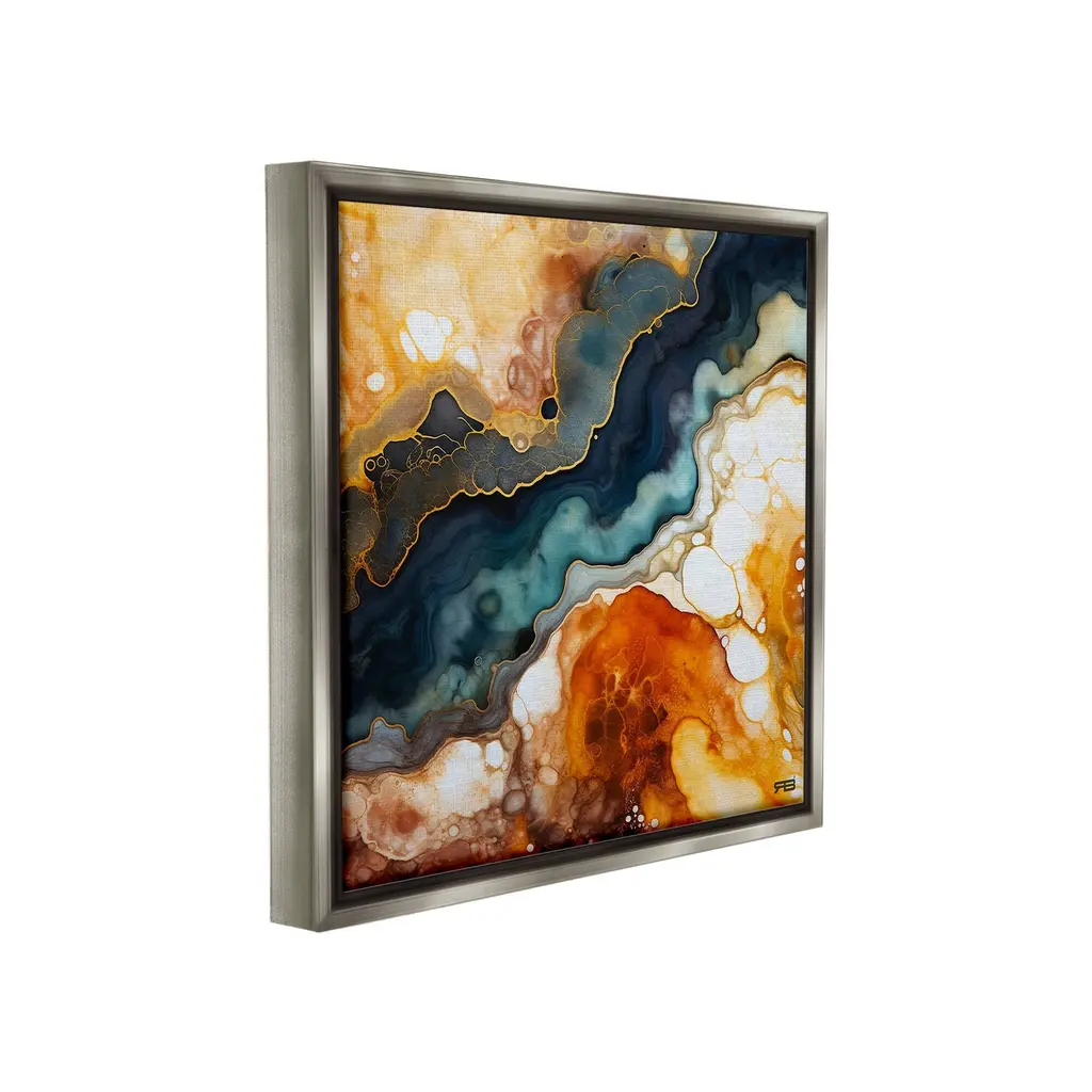 Elevate your home or office to the next level with Stupell Framed Floating Canvas Wall Art. Our premium hand-stretched canvas is mounted securely into a sturdy lightweight frame. The museum-style gap between the wrapped canvas and the box frame gives the illusion of floating artwork. Stupell Wall Art is made in the USA.Features: Dimensions: 18 x 1.7 x 18 Frame, 17 x 1.5 x 17 Canvas ArtFloating Frame Canvas Products are available in sizes 18"x18" and 25"x25". All Floating Frame Canvas Products have a 1.7" Depth.Wall Art is Ready to Hang with Hardware Free Hanging. No Installation required. For Easy Set Up Lean or Layer Artwork on Shelf or Against Wall. Artwork is Permently Fixed into the Frame.Our elevated 1.7" Thick Floating Frame is the perfect complement to our canvas style Wall Art. We use only the highest quality inks in house with industry leading printing solutions. Canvas is hand stretched over a durable wood foundation and then mounted securly into a Modern Box Frame. Made in the USA.Artwork Relates To: Abstract, Modern, Contemporary, Pattern, Liquid, Geode, AgateDesign by RB
