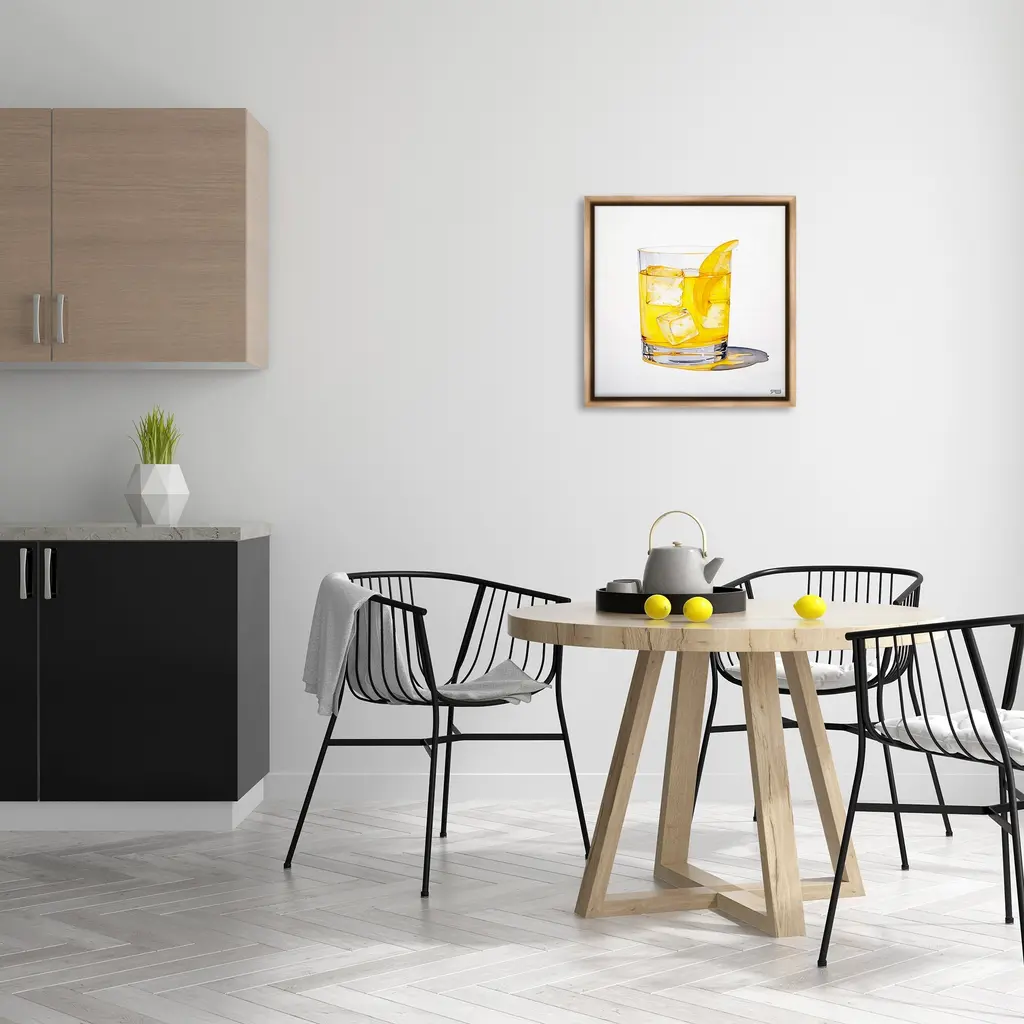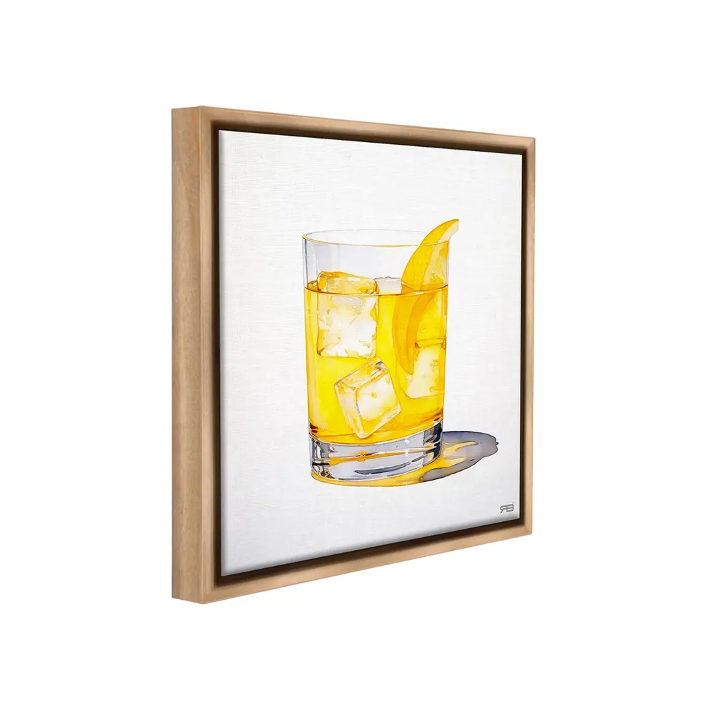 Elevate your home or office to the next level with Stupell Framed Floating Canvas Wall Art. Our premium hand-stretched canvas is mounted securely into a sturdy lightweight frame. The museum-style gap between the wrapped canvas and the box frame gives the illusion of floating artwork. Stupell Wall Art is made in the USA.Features: Dimensions: 18 x 1.7 x 18 Frame, 17 x 1.5 x 17 Canvas ArtFloating Frame Canvas Products are available in sizes 18"x18" and 25"x25". All Floating Frame Canvas Products have a 1.7" Depth.Wall Art is Ready to Hang with Hardware Free Hanging. No Installation required. For Easy Set Up Lean or Layer Artwork on Shelf or Against Wall. Artwork is Permently Fixed into the Frame.Our elevated 1.7" Thick Floating Frame is the perfect complement to our canvas style Wall Art. We use only the highest quality inks in house with industry leading printing solutions. Canvas is hand stretched over a durable wood foundation and then mounted securly into a Modern Box Frame. Made in the USA.Artwork Relates To: Glass, Alcohol, Beverage, Liquor, Whisky, Cocktail, MinimalDesign by RB