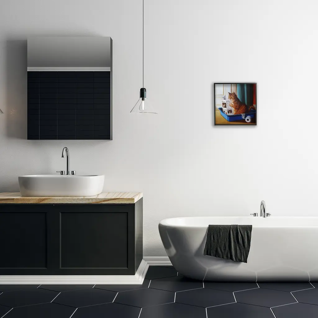 Stupell Litter Box Reading Funny Cat Pet Painting, 12x12, Framed Wall Art, Design By Lucia Heffernan - Multi-Color - 12 X 12 - Wood - Black