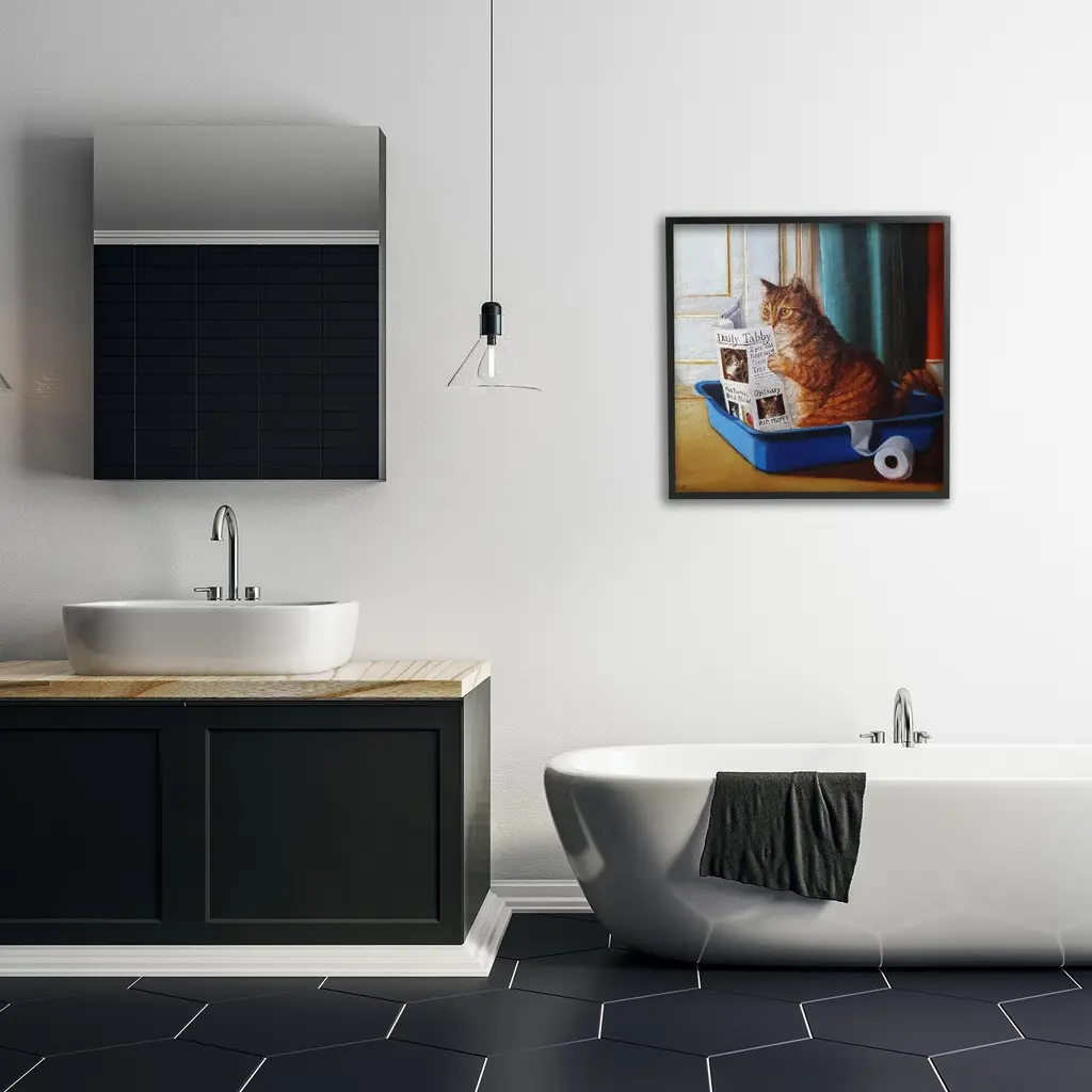 Stupell Litter Box Reading Funny Cat Pet Painting, 12x12, Framed Wall Art, Design By Lucia Heffernan - Multi-Color - 24 X 24 - Wood - Black