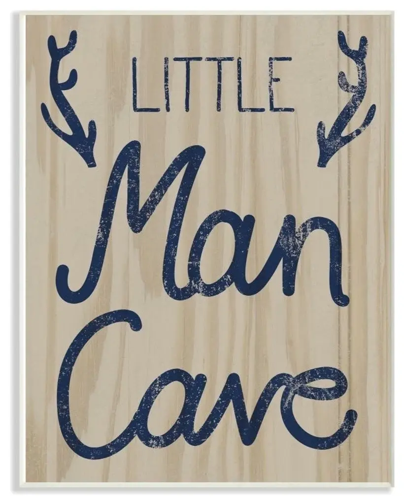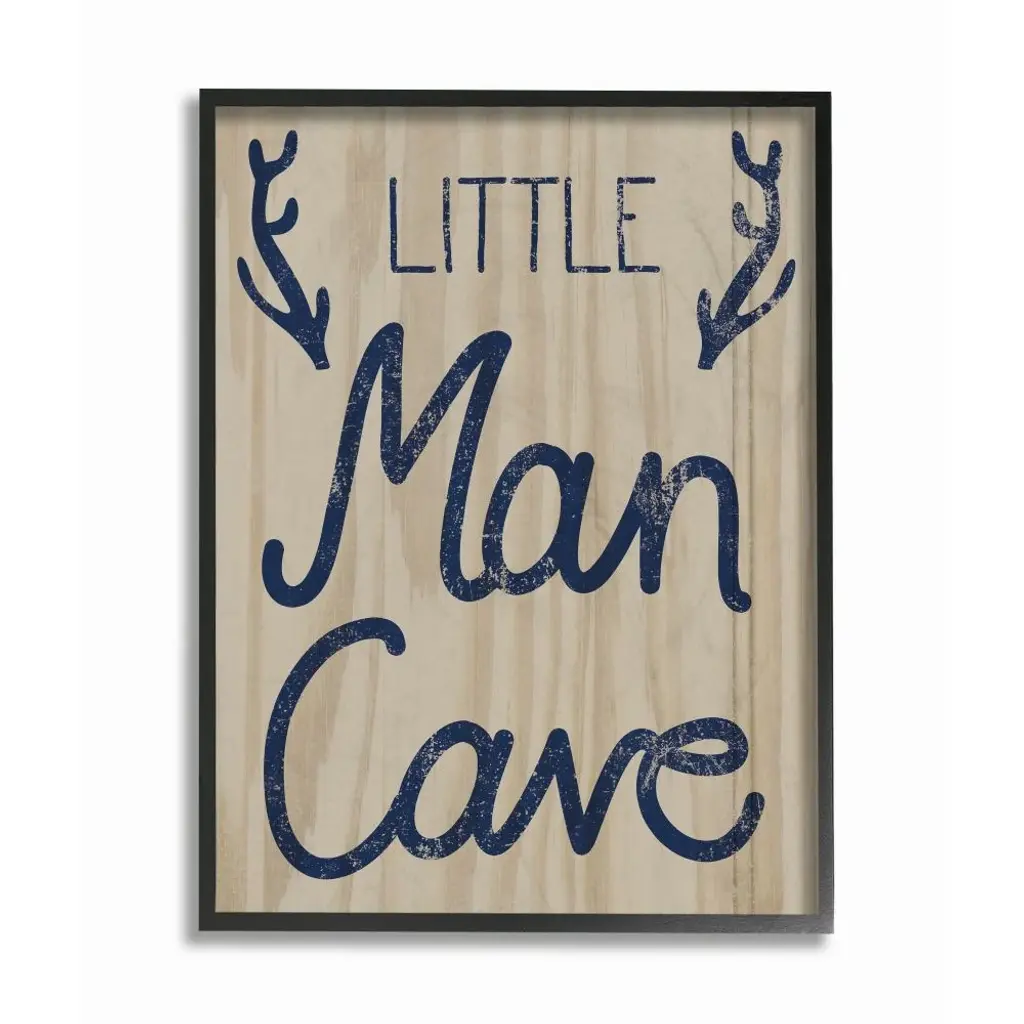 Stupell Little Man Cave Antlers Wood Grain Gray Framed Art, 11 X 14, Design By Artist Ashley Calhoun - 16 X 20