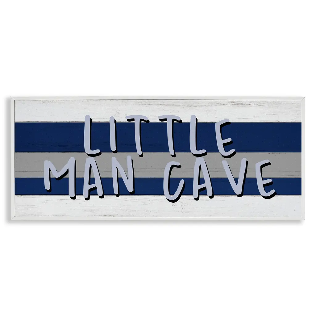 Stupell Little Man Cave Navy Blue Script With Antlers Wood Grain Framed Art, 11x14, Proudly Made In Usa - 16 X 20