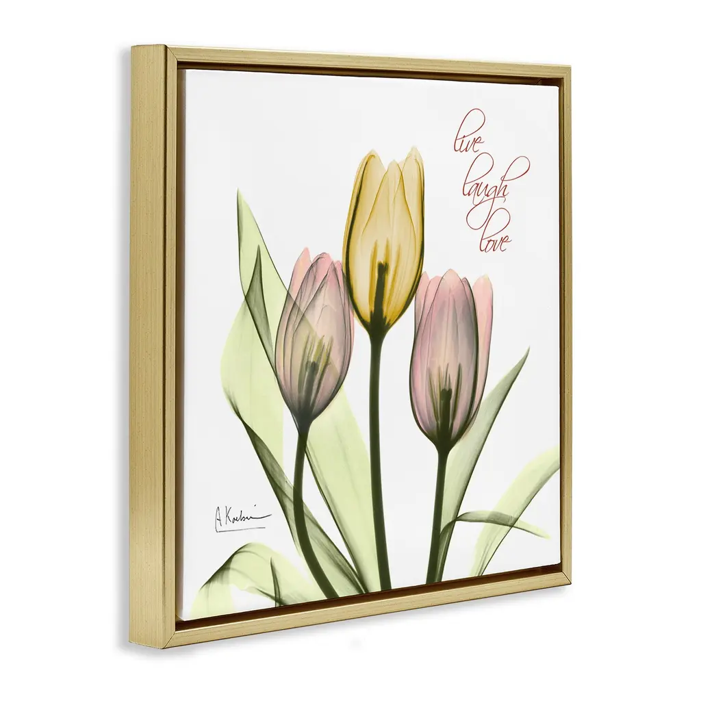 Elevate your home or office to the next level with Stupell Framed Floating Canvas Wall Art. Our premium hand-stretched canvas is mounted securely into a sturdy lightweight frame. The museum-style gap between the wrapped canvas and the box frame gives the illusion of floating artwork. Stupell Wall Art is made in the USA.Features: Dimensions: 18 x 1.7 x 18 Frame, 17 x 1.5 x 17 Canvas ArtFloating Frame Canvas Products are available in sizes 18"x18" and 25"x25". All Floating Frame Canvas Products have a 1.7" Depth.Wall Art is Ready to Hang with Hardware Free Hanging. No Installation required. For Easy Set Up Lean or Layer Artwork on Shelf or Against Wall. Artwork is Permently Fixed into the Frame.Our elevated 1.7" Thick Floating Frame is the perfect complement to our canvas style Wall Art. We use only the highest quality inks in house with industry leading printing solutions. Canvas is hand stretched over a durable wood foundation and then mounted securly into a Modern Box Frame. Made in the USA.Artwork Relates To: Flower, Floral, Modern, Contemporary, X-Ray, Tulip, Phrase, PhotographyDesign by Albert Koetsier