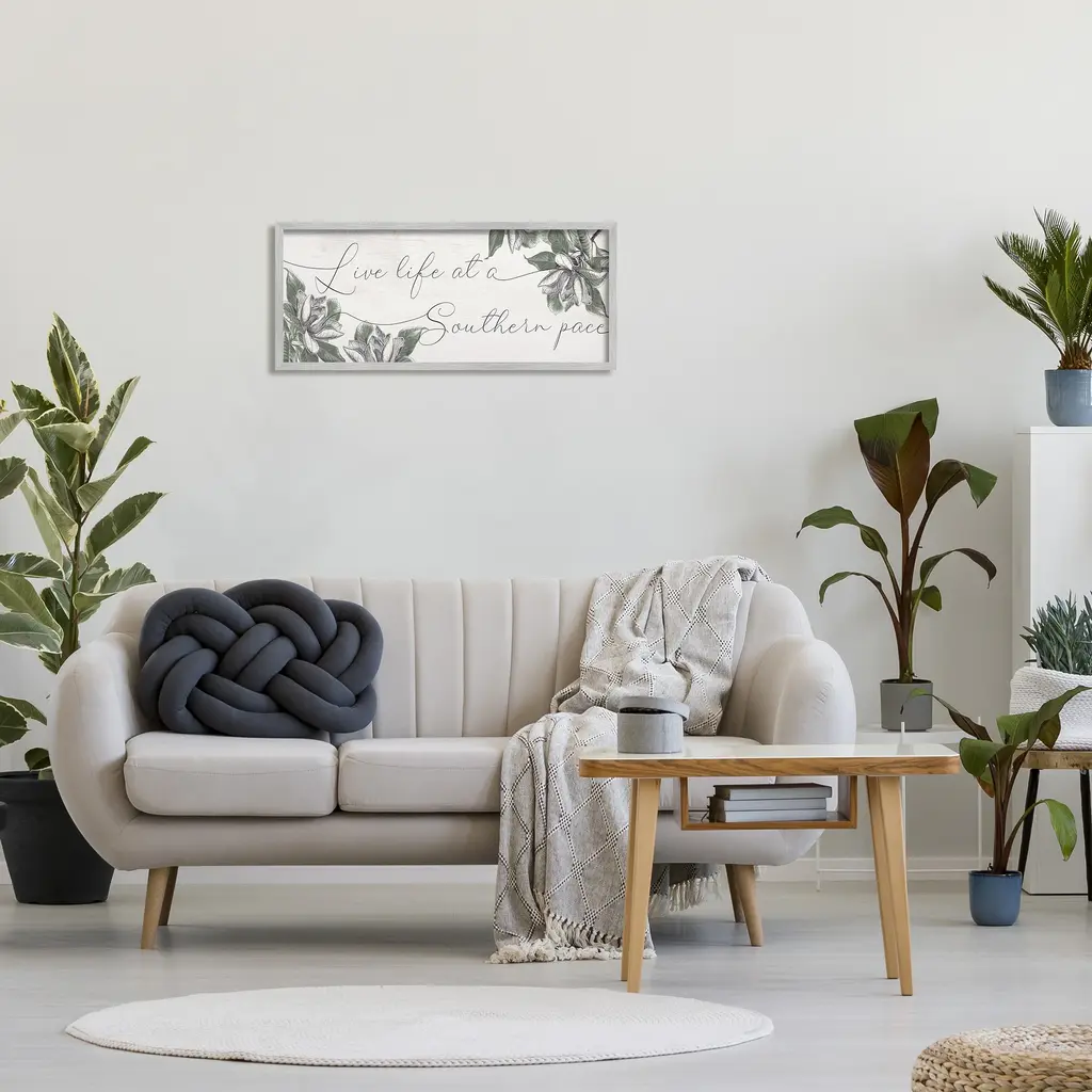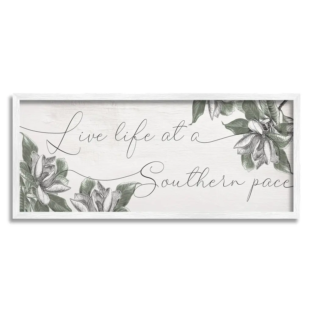 Stupell Live Life At A Southern Pace Vintage Magnolia Florals Framed Wall Art - 13 X 30 - Grey