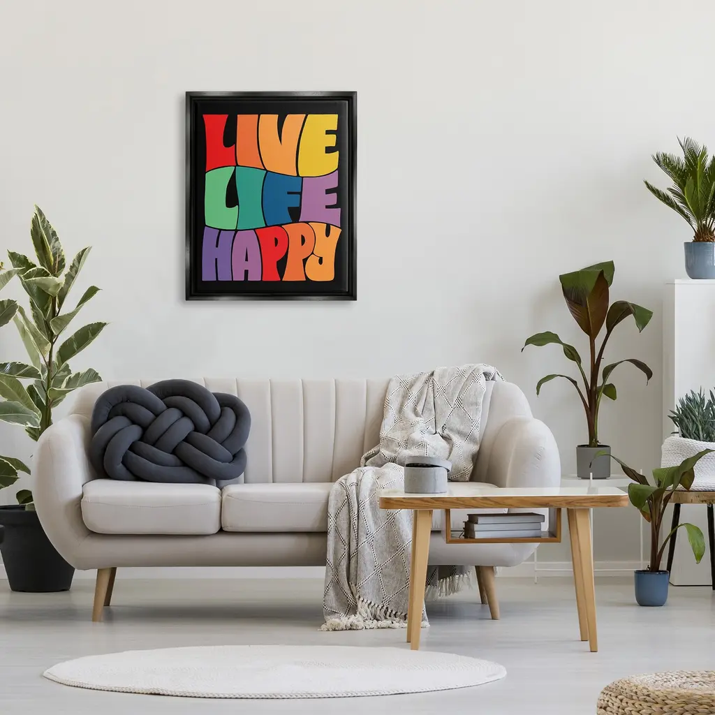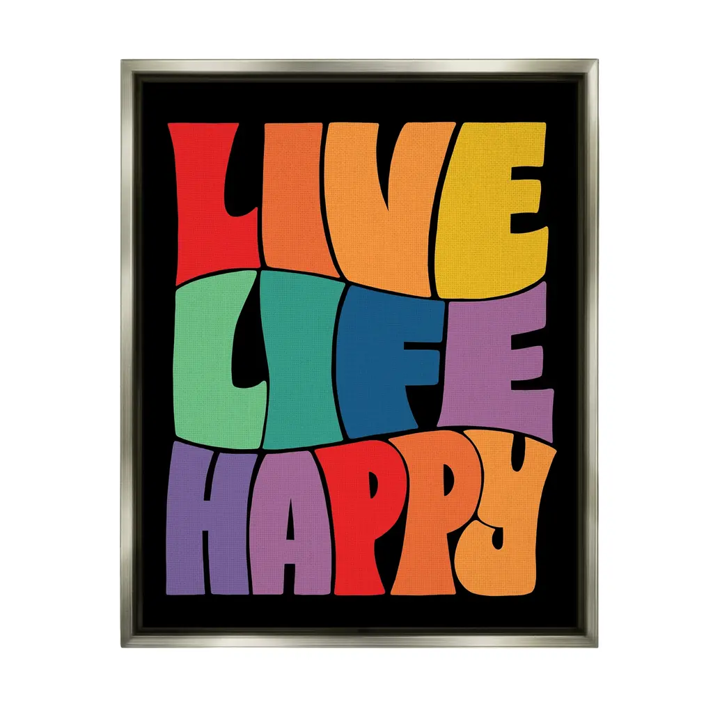 Elevate your home or office to the next level with Stupell Framed Floating Canvas Wall Art. Our premium hand-stretched canvas is mounted securely into a sturdy lightweight frame. The museum-style gap between the wrapped canvas and the box frame gives the illusion of floating artwork. Stupell Wall Art is made in the USA.Features: Dimensions: 17 x 1.7 x 21 Frame, 16 x 1.5 x 20 Canvas ArtFloating Frame Sizes Include Standard: 17 x 1.7 x 21 Oversized: 25 x 1.7 x 31Wall Art is Ready to Hang - No Installation or Hardware Needed. For Easy Set Up Lean or Layer Artwork on Shelf or Against Wall.Our elevated 1.7" Thick Floating Frame is the perfect complement to our canvas style Wall Art. We use only the highest quality inks in house with industry leading printing solutions. Canvas is hand stretched over a durable wood foundation and then mounted securly into a Modern Box Frame. Made in the USA.Artwork Relates To: Live Life Happy, Rainbow, Bold, PrideDesign by Jo Taylor