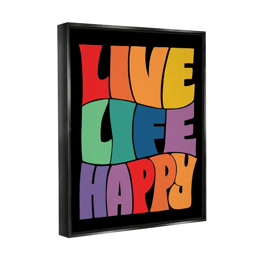 Elevate your home or office to the next level with Stupell Framed Floating Canvas Wall Art. Our premium hand-stretched canvas is mounted securely into a sturdy lightweight frame. The museum-style gap between the wrapped canvas and the box frame gives the illusion of floating artwork. Stupell Wall Art is made in the USA.Features: Dimensions: 17 x 1.7 x 21 Frame, 16 x 1.5 x 20 Canvas ArtFloating Frame Sizes Include Standard: 17 x 1.7 x 21 Oversized: 25 x 1.7 x 31Wall Art is Ready to Hang - No Installation or Hardware Needed. For Easy Set Up Lean or Layer Artwork on Shelf or Against Wall.Our elevated 1.7" Thick Floating Frame is the perfect complement to our canvas style Wall Art. We use only the highest quality inks in house with industry leading printing solutions. Canvas is hand stretched over a durable wood foundation and then mounted securly into a Modern Box Frame. Made in the USA.Artwork Relates To: Live Life Happy, Rainbow, Bold, PrideDesign by Jo Taylor