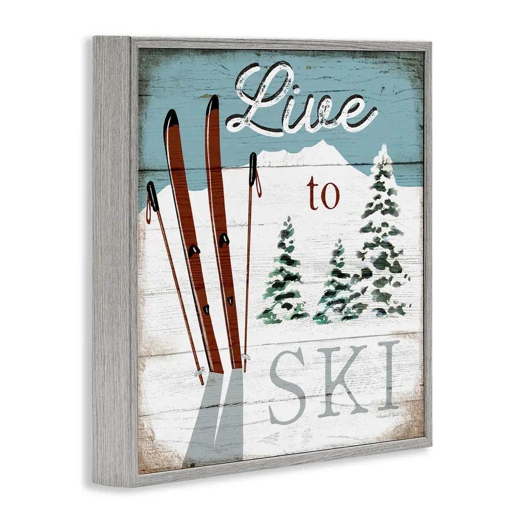 Stupell Live To Ski Rustic Snow Sports Rustic Cabin Framed Wall Art - 17 X 17 - Grey