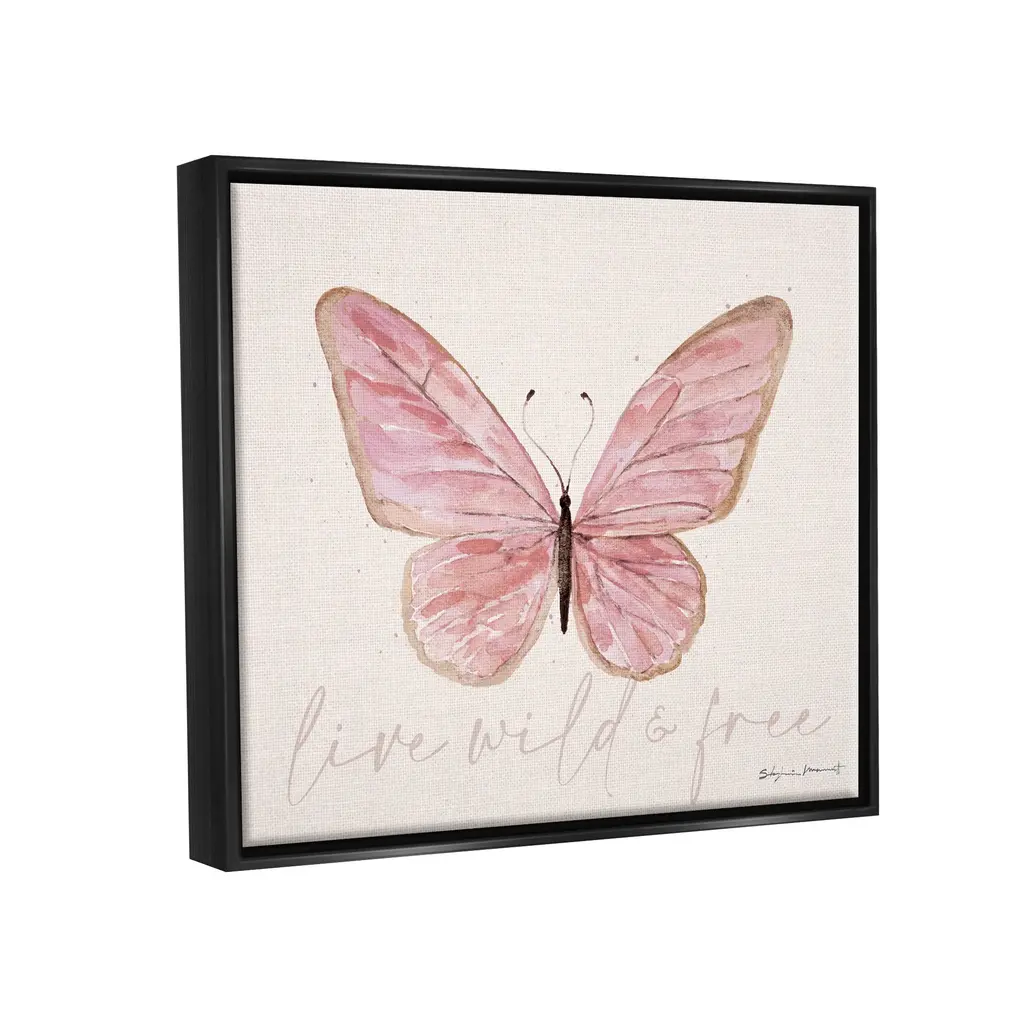 Stupell Live Wild & Free Pink Butterfly Framed Floater Canvas Wall Art By Stephanie Workman Marrott - 31 X 25 - Black