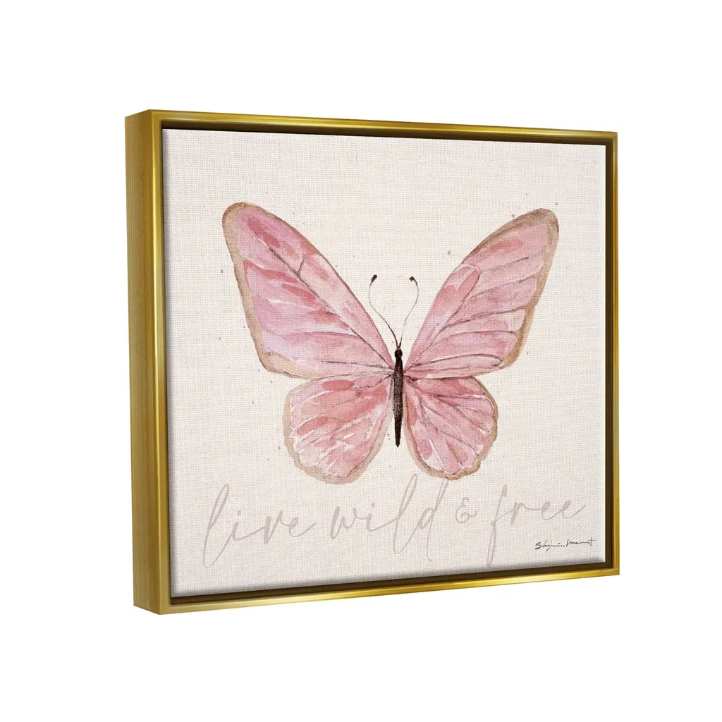 Stupell Live Wild & Free Pink Butterfly Framed Floater Canvas Wall Art By Stephanie Workman Marrott - 31 X 25 - Gold