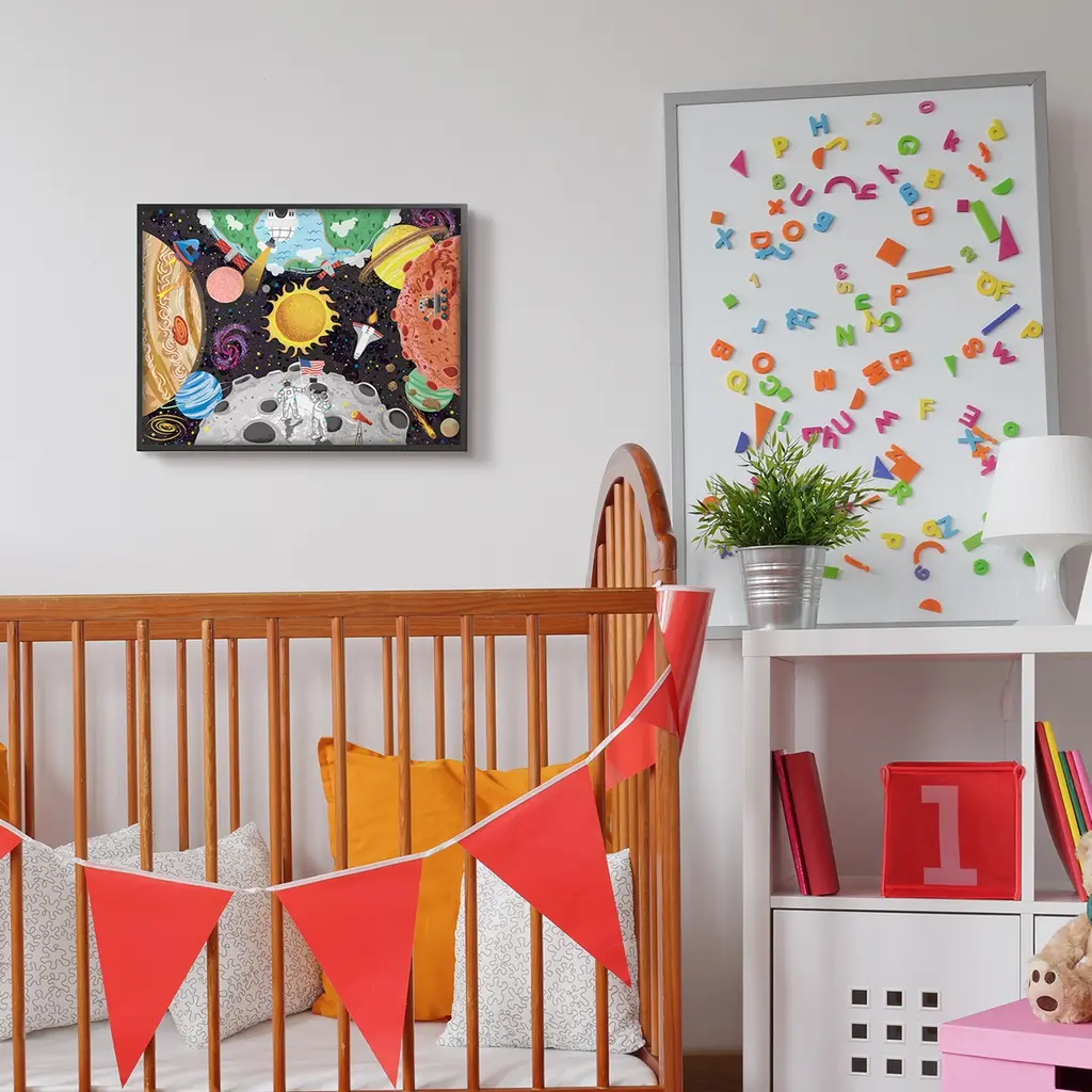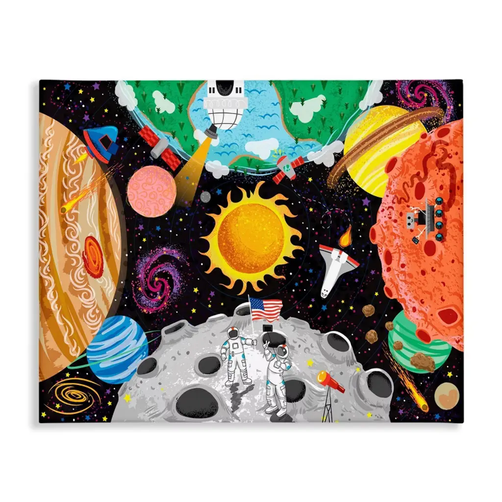 Stupell Lively Outer Space Planets Astronauts On Moon Framed Wall Art - Multi-Color - 16 X 20 - Black