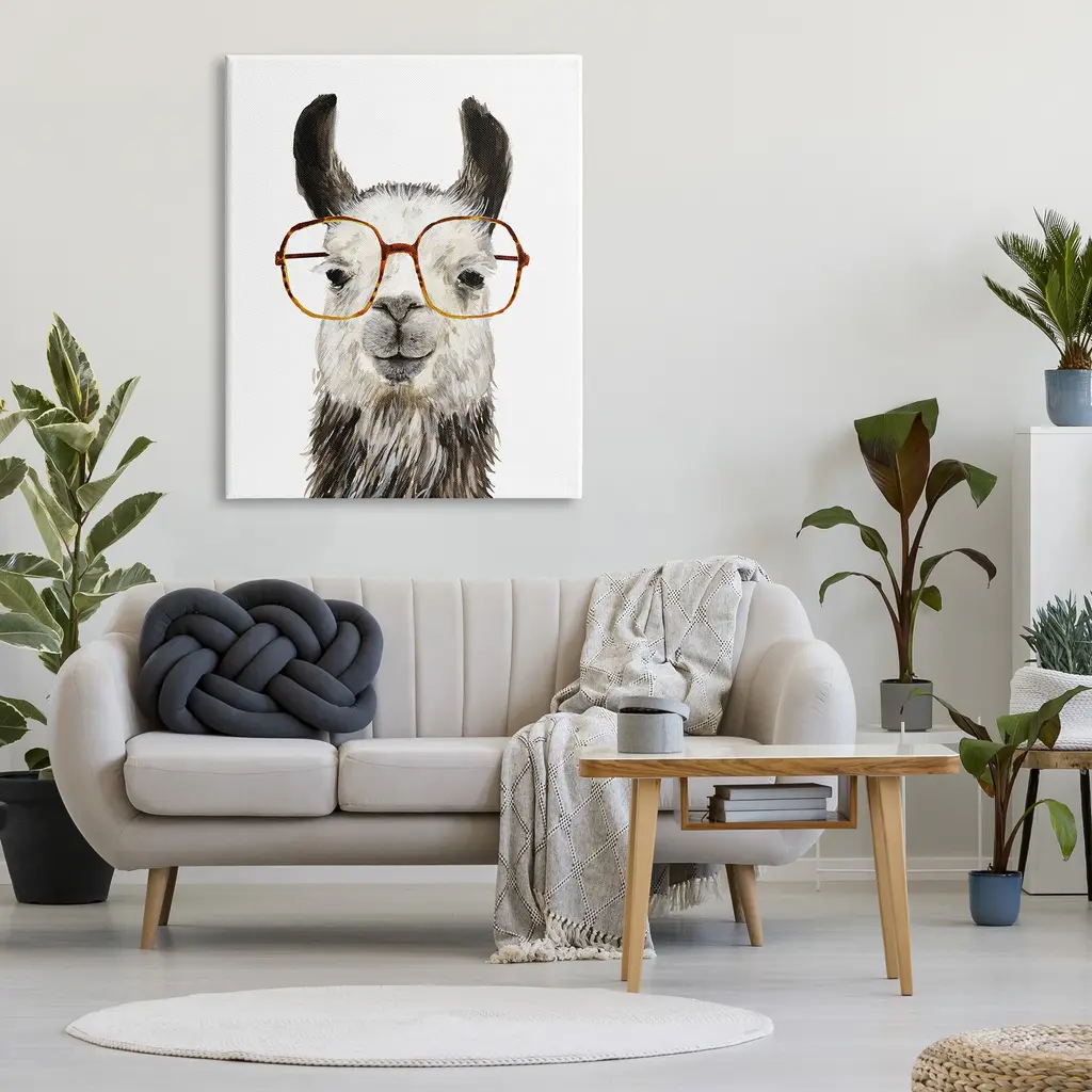 Stupell Llama Farm Animal Eyeglasses Canvas Wall Art By Victoria Borges - 36 X 48