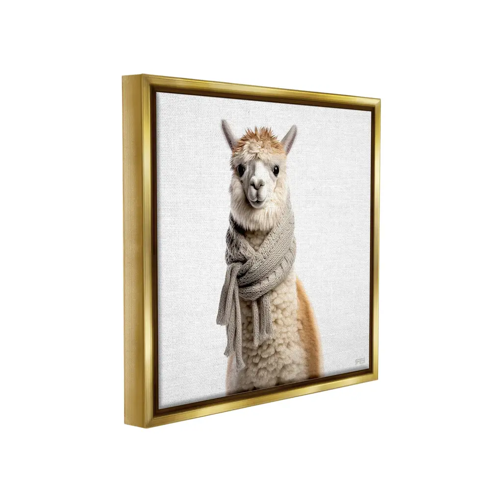 Stupell Llama Wearing Scarf Framed Floater Canvas Wall Art Design By Rb - 25 X 25 - Gold