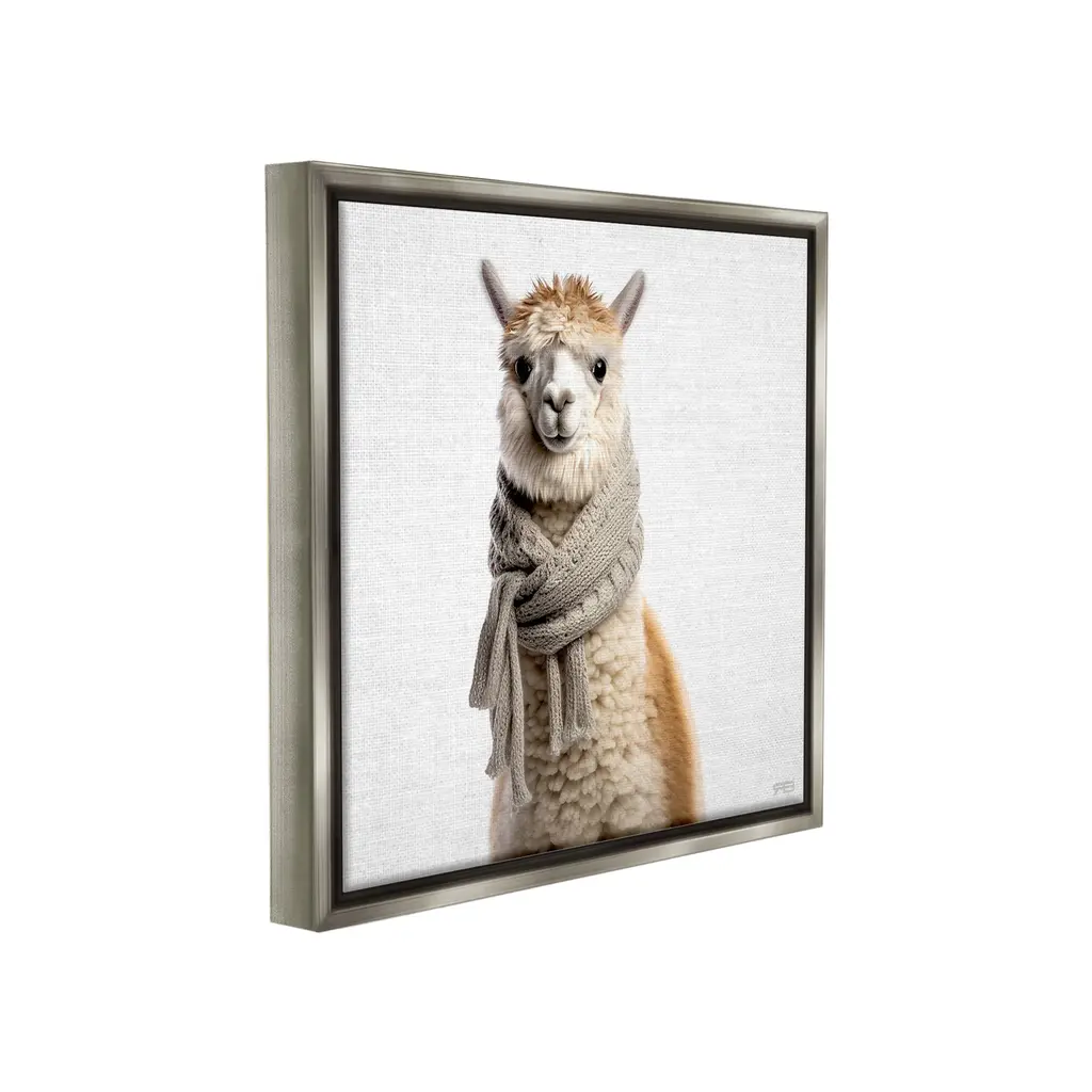 Elevate your home or office to the next level with Stupell Framed Floating Canvas Wall Art. Our premium hand-stretched canvas is mounted securely into a sturdy lightweight frame. The museum-style gap between the wrapped canvas and the box frame gives the illusion of floating artwork. Stupell Wall Art is made in the USA.Features: Dimensions: 18 x 1.7 x 18 Frame, 17 x 1.5 x 17 Canvas ArtFloating Frame Canvas Products are available in sizes 18"x18" and 25"x25". All Floating Frame Canvas Products have a 1.7" Depth.Wall Art is Ready to Hang with Hardware Free Hanging. No Installation required. For Easy Set Up Lean or Layer Artwork on Shelf or Against Wall. Artwork is Permently Fixed into the Frame.Our elevated 1.7" Thick Floating Frame is the perfect complement to our canvas style Wall Art. We use only the highest quality inks in house with industry leading printing solutions. Canvas is hand stretched over a durable wood foundation and then mounted securly into a Modern Box Frame. Made in the USA.Artwork Relates To: Animal, Mammal, Llama, Clothing, Scarf, , MinimalDesign by RB