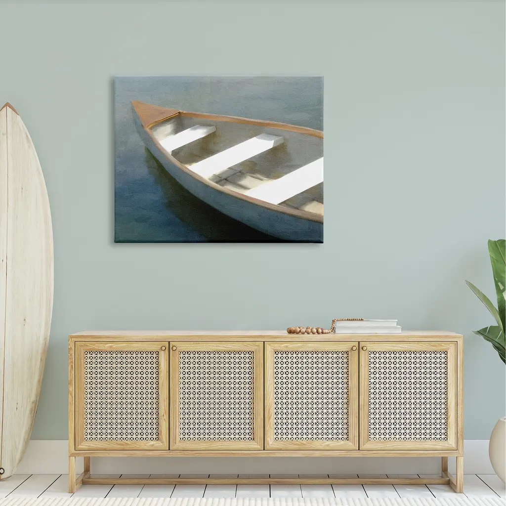 Proudly made in the USA, Our stretched canvas is created with the highest standards. We use only the highest quality inks and canvas on our in house Mimaki printers, and then hand cut and stretch each piece over a 1.5 inch thick wooden frame for hanging. The art comes ready to hang with no installation required. Not to mention, at this size, it is sure to be the focal point of any room!Features:Stretched Canvas Sizes IncludeStandard: 20 x 1.5 x 16Large: 30 x 1.5 x 20X-Large: 40 x 1.5 x 30Oversized: 48 x 1.5 x 36Wall Art is Ready to Hang - No Installation or Hardware Needed. For Easy Set Up Lean or Layer Artwork on Shelf or Against Wall.Artwork Relates To: Canoe, Boat, Rowboat, Vehicle, Transportation, Dinghy, Watercraft, Lake, Painting Our stretched canvas is created with the highest standards. We use only the highest quality inks and canvas on our in house Mimaki printers, and then hand cut and stretch each piece over a 1.5 inch thick wooden frame for hanging. Made In USA.Design by Kim Allen