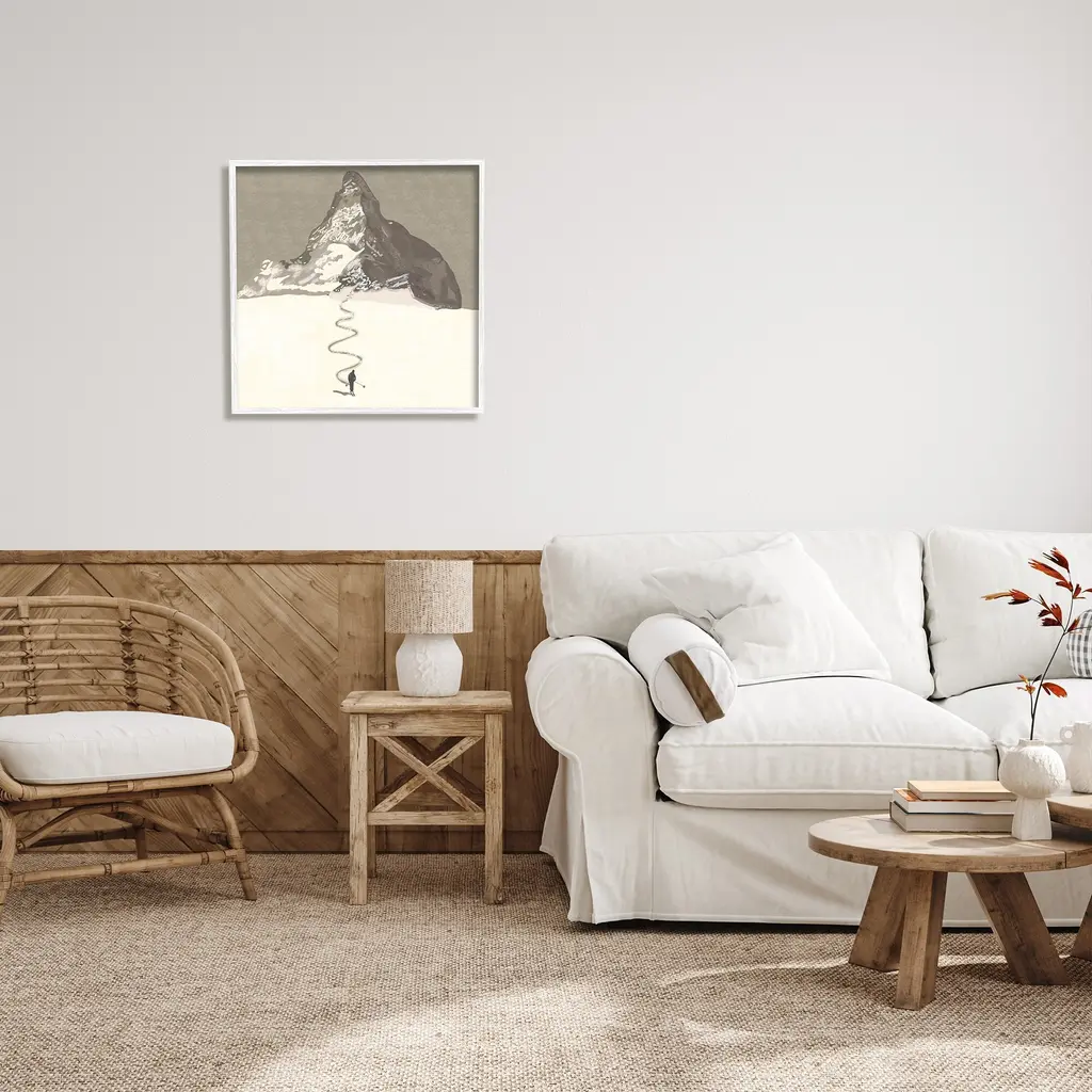 Stupell Lonely Single Slope Ski Winter Sports Mountain Range Framed Wall Art - 24 X 24 - White