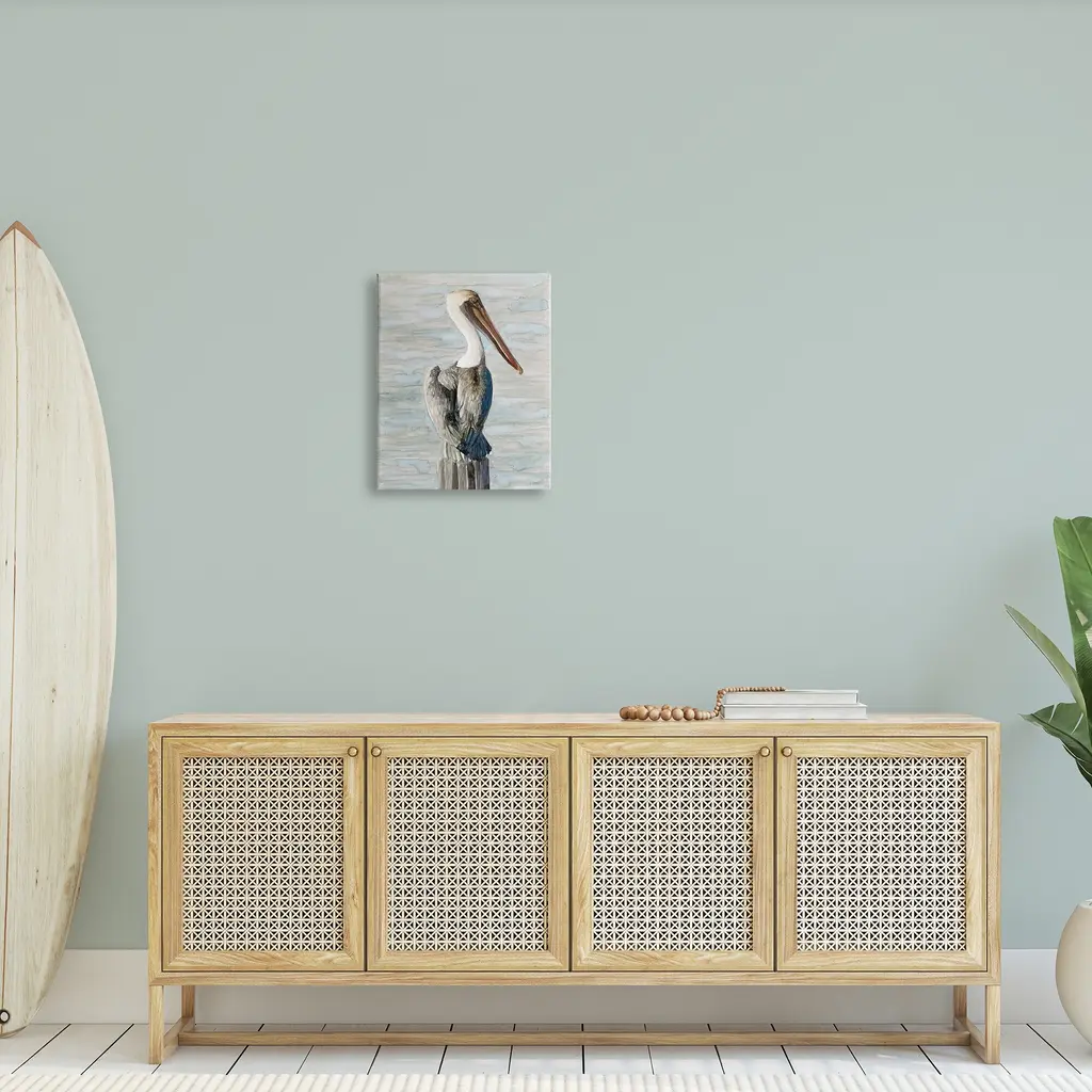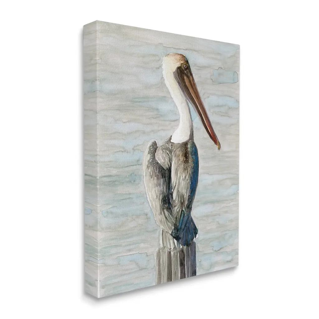 Stupell Long Beak Pelican Watercolor Painting Coastal Waterfowl Bird Canvas Wall Art - Blue - 16 X 20