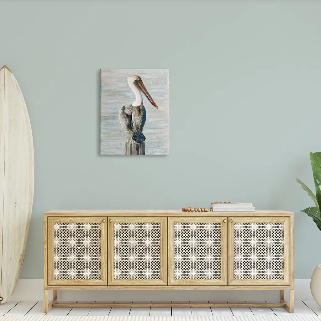 Stupell Long Beak Pelican Watercolor Painting Coastal Waterfowl Bird Canvas Wall Art - Blue - 24 X 30