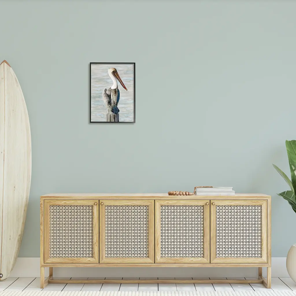 Stupell Long Beak Pelican Watercolor Painting Coastal Waterfowl Bird Framed Wall Art - Blue - 16 X 20 - Black