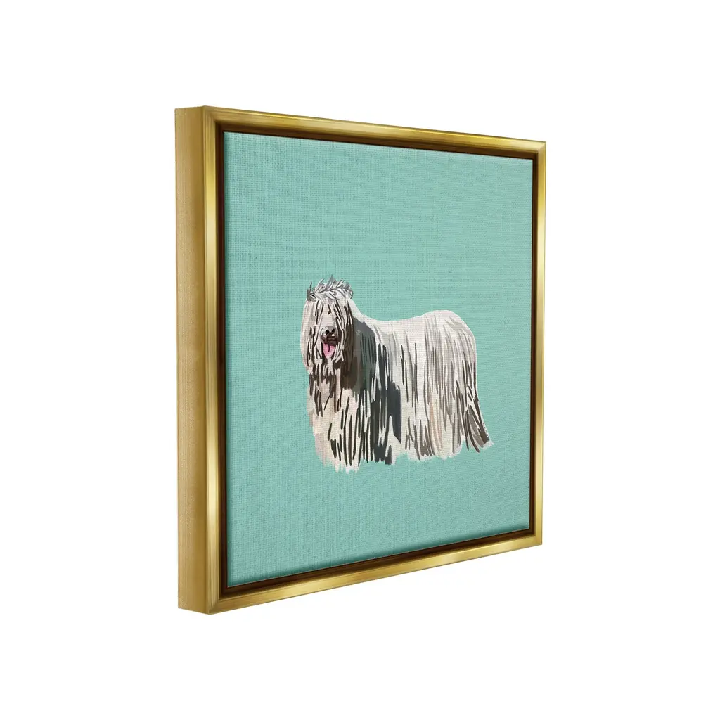 Stupell Long Haired Dog In Crown Framed Floater Canvas Wall Art Design By Amelia Noyes - 18 X 18 - Gold