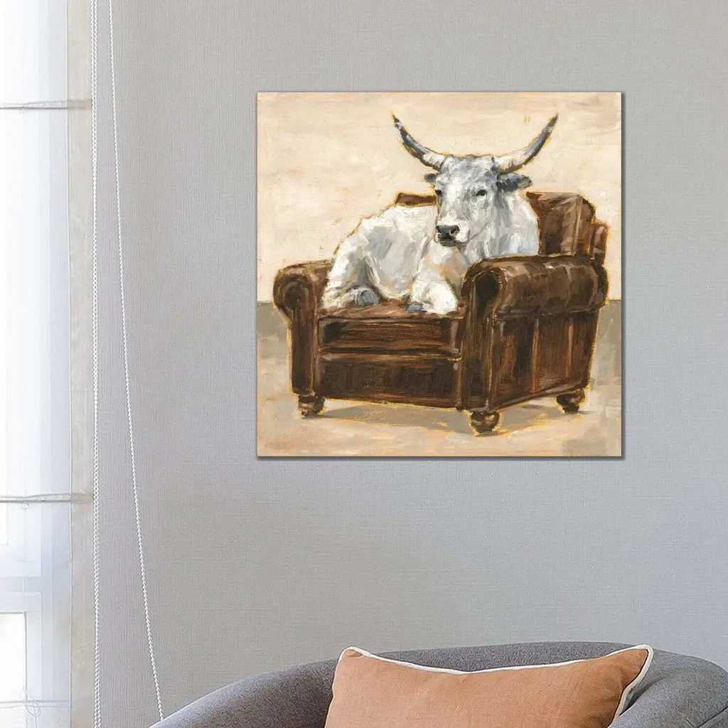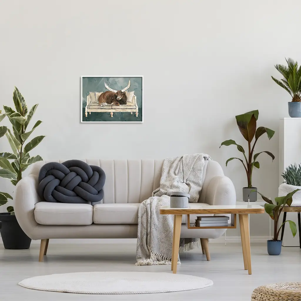 Stupell Longhorn Bull Laying Living Room Couch Green Gray Framed Wall Art - 20 X 16 - White