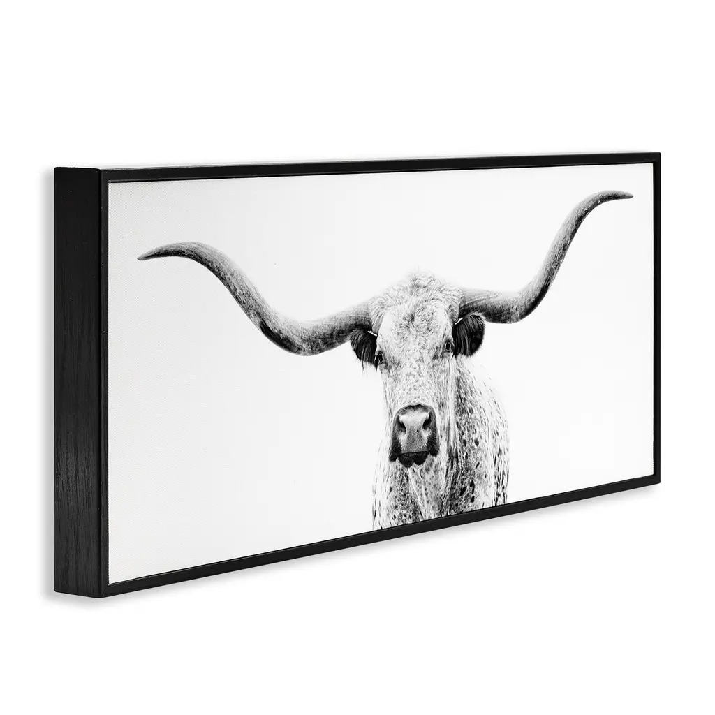 Our Framed Giclee Wall Art adds a touch of class to any space in your home or office. Frames are available in three alluring styles: black, gray farmhouse and white. Our textured artwork will add more depth and dimension to any space. Each piece is mounted with a 1.5 inch thick wood grain frame that is ready to hang! Looking for a statement piece? We have oversized artwork available.Features: Wall Art is Ready to Hang - No Installation or Hardware Needed. For Easy Set Up Lean or Layer Artwork on Shelf or Against Wall.Our giclee prints are carefully mounted on a durable MDF backing, and then perfectly finished in a 1.5 inch thick woodgrain frame. Mounted frame colors include black, gray farmhouse and white. Made In USA.Artwork Relates To: Longhorn; Cattle; Animal; Mammal; WildlifeDesign by PHBurchett