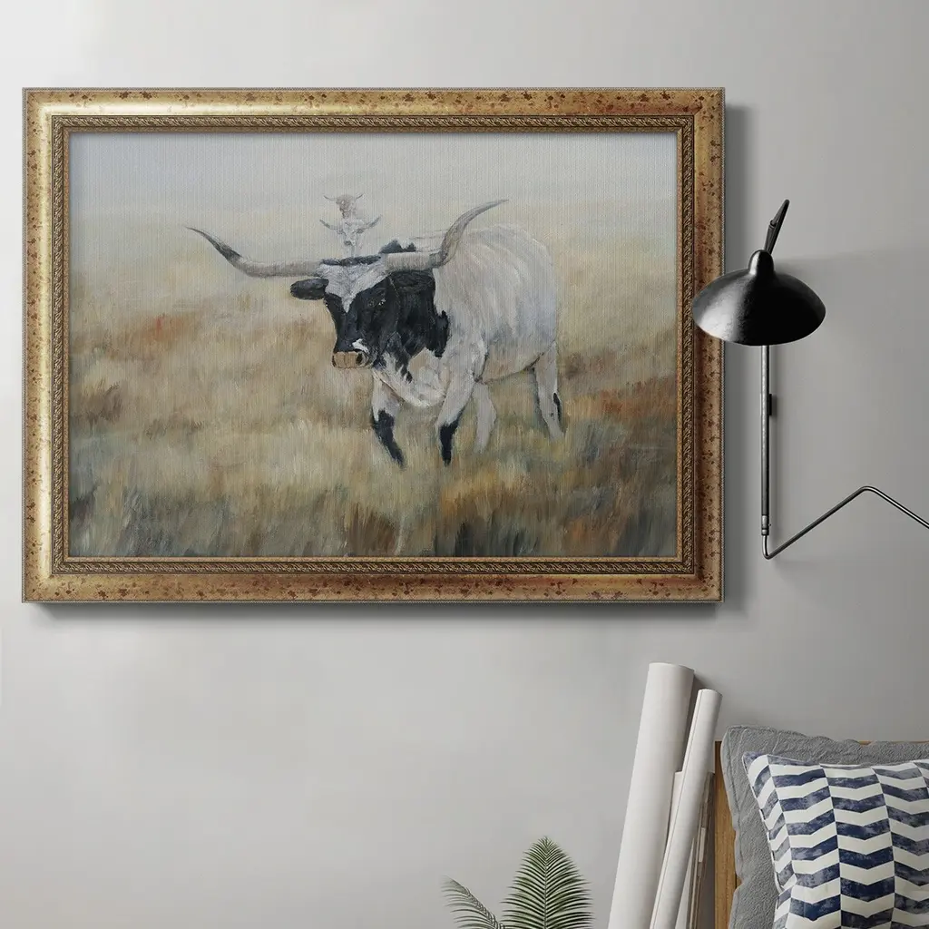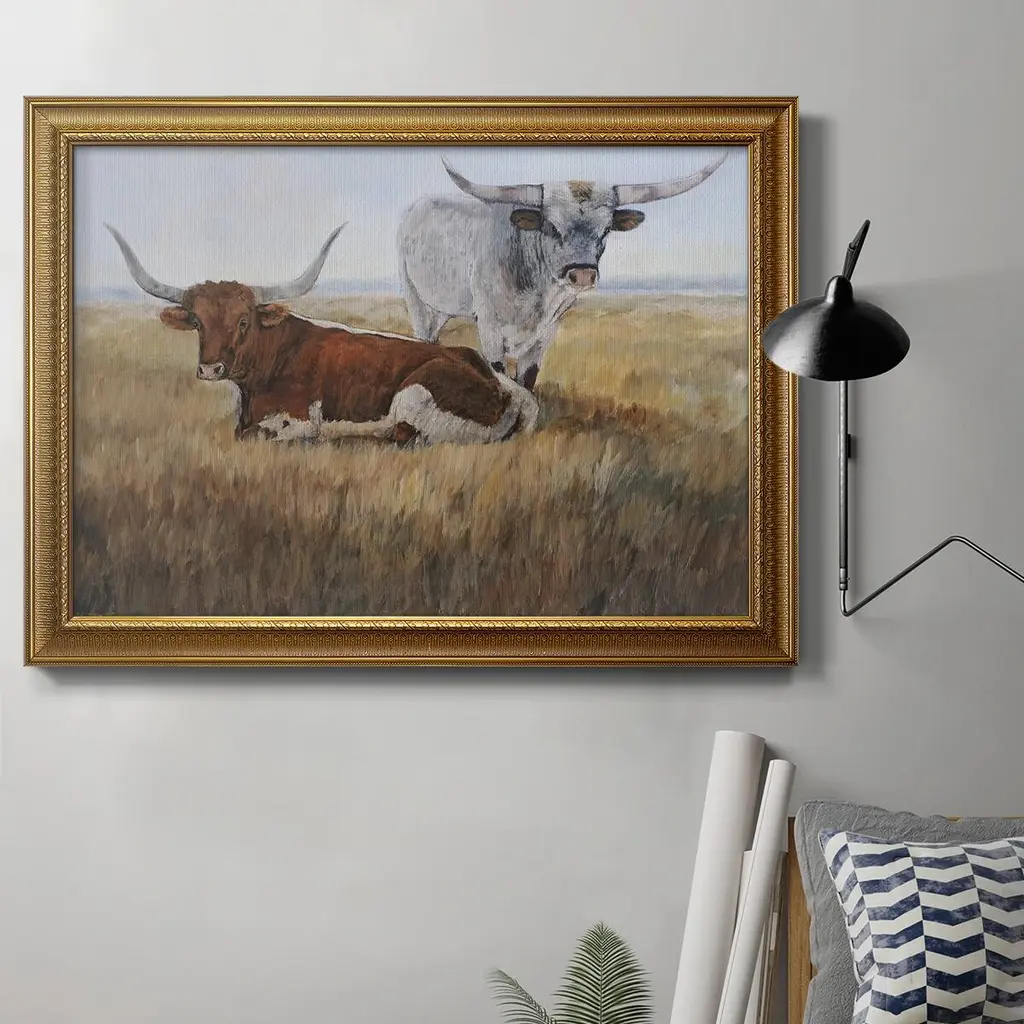 Stupell Longhorn Cattle Grazing Framed Floater Canvas Wall Art By Kathy Winkler - 20 X 16 - Gold