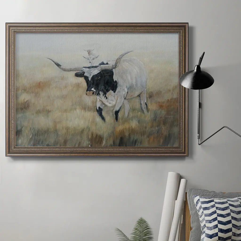 Our Framed Giclee Wall Art adds a touch of class to any space in your home or office. Frames are available in three alluring styles: black, gray farmhouse and white. Our textured artwork will add more depth and dimension to any space. Each piece is mounted with a 1.5 inch thick wood grain frame that is ready to hang! Looking for a statement piece? We have oversized artwork available.Features: Wall Art is Ready to Hang - No Installation or Hardware Needed. For Easy Set Up Lean or Layer Artwork on Shelf or Against Wall.Our giclee prints are carefully mounted on a durable MDF backing, and then perfectly finished in a 1.5 inch thick woodgrain frame. Mounted frame colors include black, gray farmhouse and white. Made In USA.Artwork Relates To: Cow; Cattle; Mammal; Animal; LonghornDesign by Marcus Prime