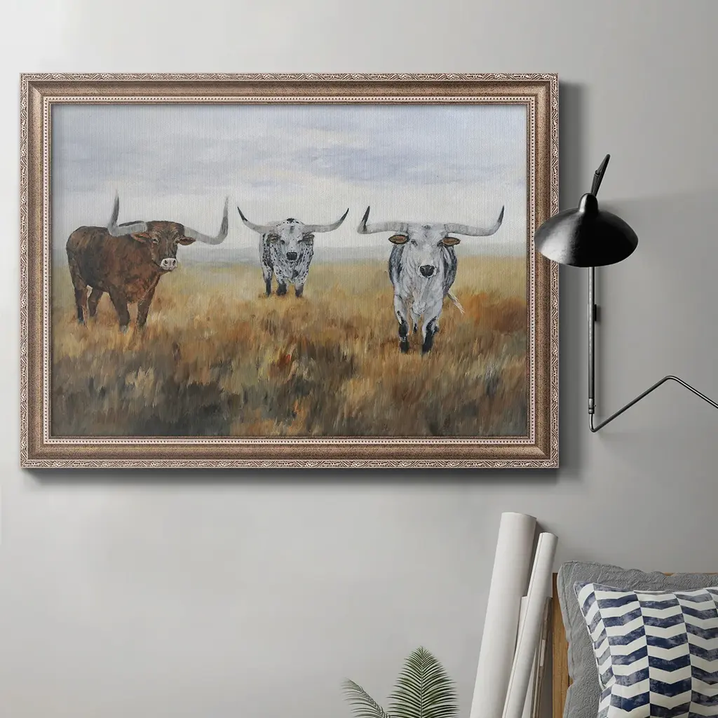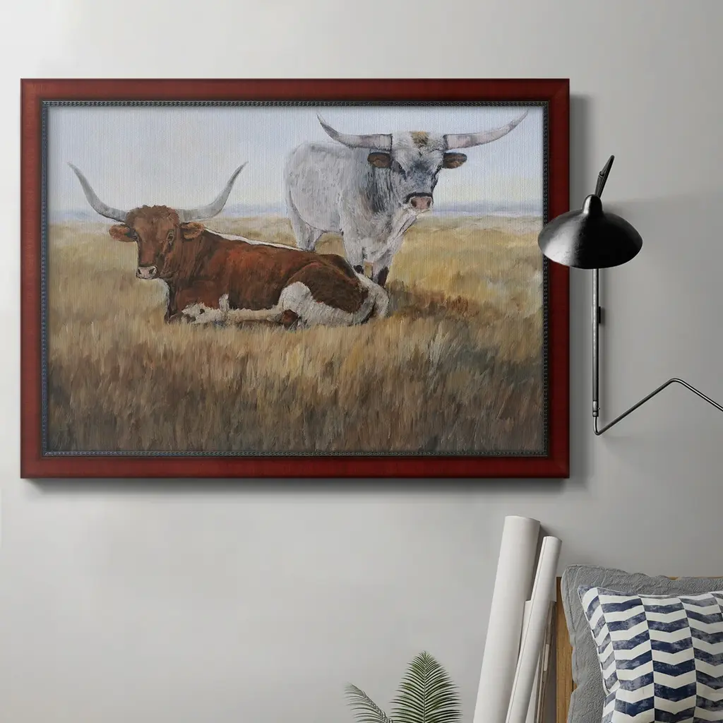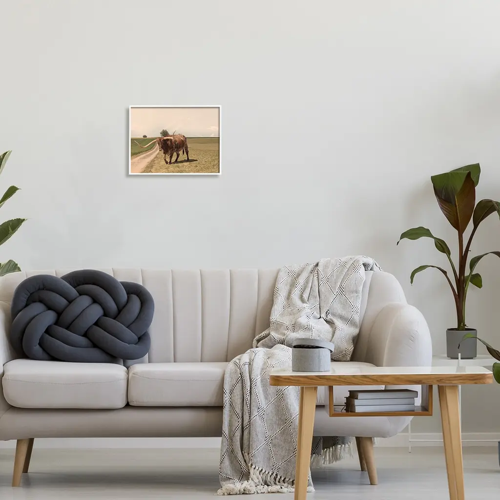 Our Framed Giclee Wall Art adds a touch of class to any space in your home or office. Frames are available in three alluring styles: black, gray farmhouse and white. Our textured artwork will add more depth and dimension to any space. Each piece is mounted with a 1.5 inch thick wood grain frame that is ready to hang! Looking for a statement piece? We have oversized artwork available.Features: Wall Art is Ready to Hang - No Installation or Hardware Needed. For Easy Set Up Lean or Layer Artwork on Shelf or Against Wall.Our giclee prints are carefully mounted on a durable MDF backing, and then perfectly finished in a 1.5 inch thick woodgrain frame. Mounted frame colors include black, gray farmhouse and white. Made In USA.Artwork Relates To: Cow; Cattle; Mammal; Animal; LonghornDesign by Marcus Prime