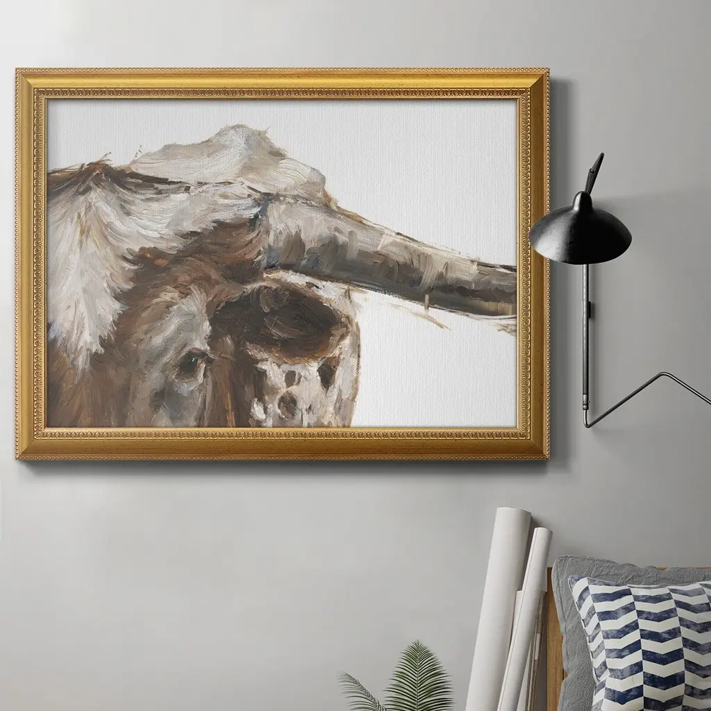 Stupell Longhorn Cattle Watercolor Portrait Children's Wild Animal Framed Wall Art - Yellow - 17 X 17 - White