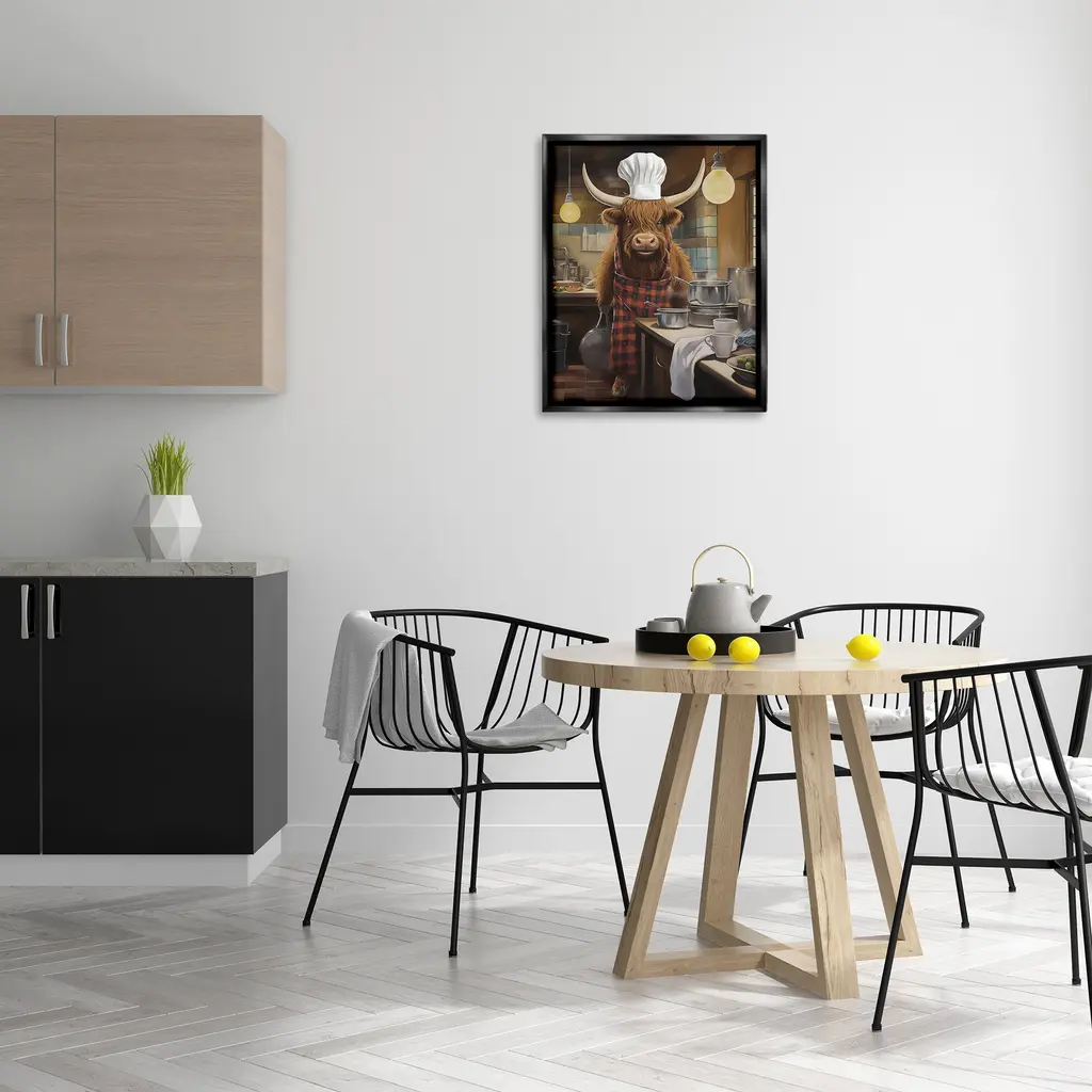 Elevate your home or office to the next level with Stupell Framed Floating Canvas Wall Art. Our premium hand-stretched canvas is mounted securely into a sturdy lightweight frame. The museum-style gap between the wrapped canvas and the box frame gives the illusion of floating artwork. Stupell Wall Art is made in the USA.Features: Dimensions: 17 x 1.7 x 21 Frame, 16 x 1.5 x 20 Canvas ArtFloating Frame Canvas Products are available in sizes 17"x21" and 25"x31". All Floating Frame Canvas Products have a 1.7" Depth.Wall Art is Ready to Hang with Hardware Free Hanging. No Installation required. For Easy Set Up Lean or Layer Artwork on Shelf or Against Wall. Artwork is Permently Fixed into the Frame.Our elevated 1.7" Thick Floating Frame is the perfect complement to our canvas style Wall Art. We use only the highest quality inks in house with industry leading printing solutions. Canvas is hand stretched over a durable wood foundation and then mounted securly into a Modern Box Frame. Made in the USA.Artwork Relates To: Animal, Bull, Mammal, Cattle, Cow, Longhorn, Kitchen, Chef, CookingDesign by PSL Art