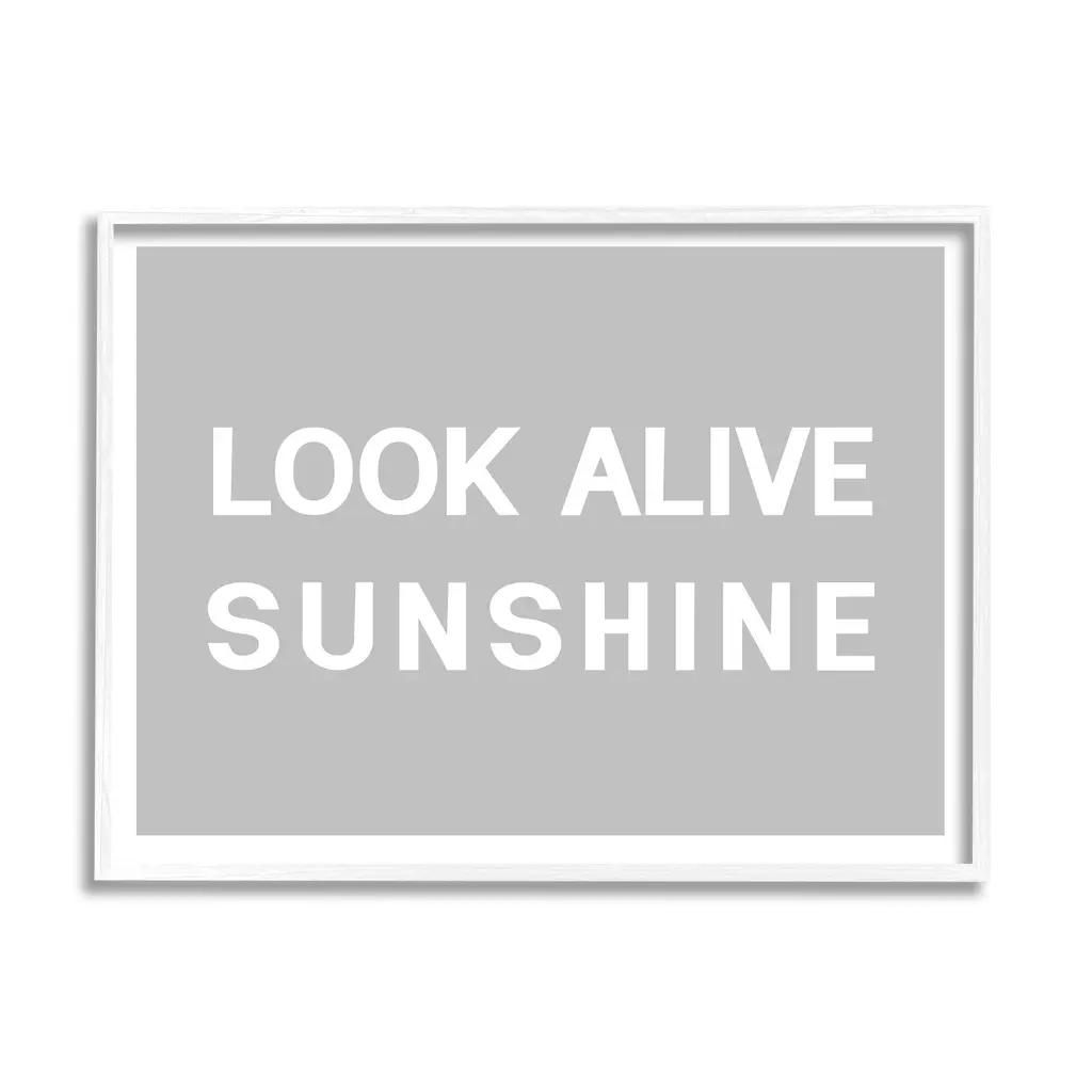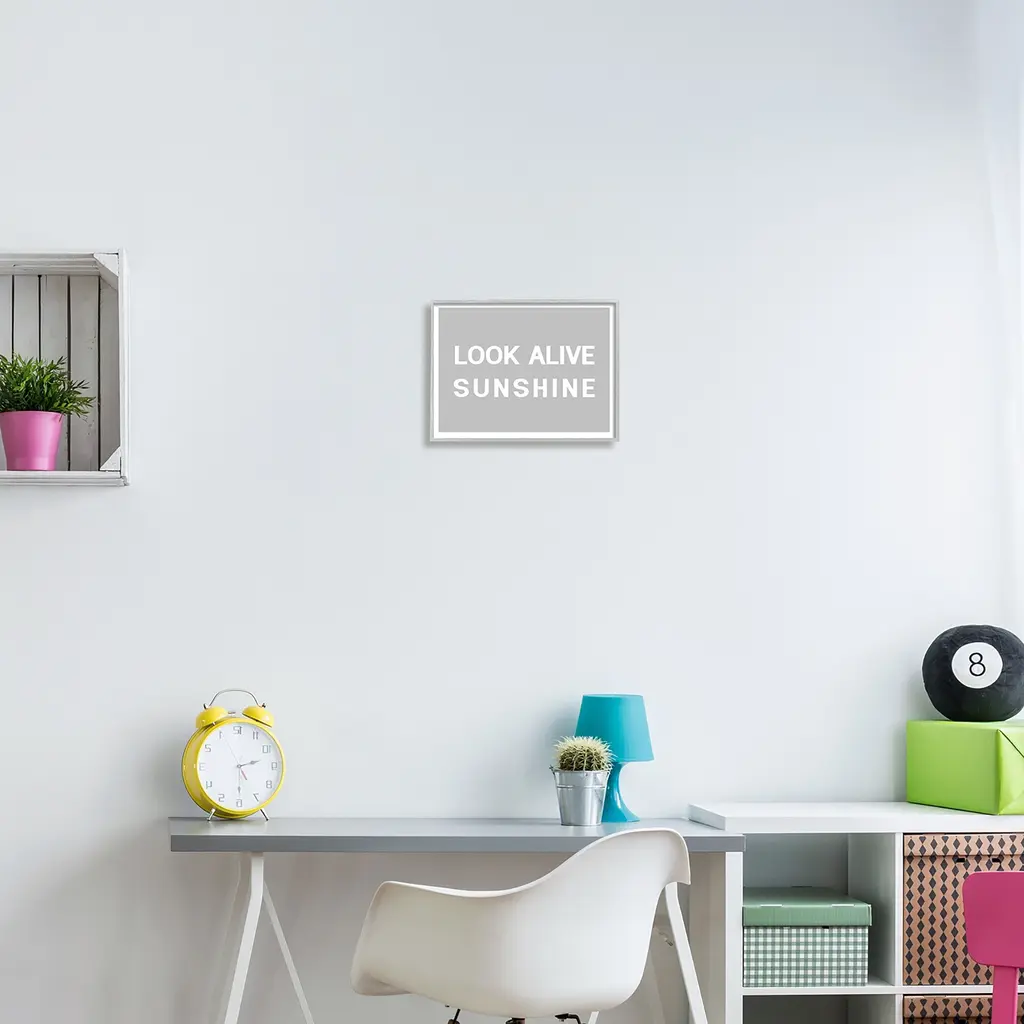 Add dimension to any room with our textured Framed Giclee Artwork. Our framed artwork is securely mounted into a 1.5-inch thick wood grain frame and ready to hang. Frames are available in three alluring styles: black, gray farmhouse and white. In addition, you should check out our oversized options if you want a statement piece. Stupell Wall Art is made in the USA.Features: Dimensions: 14 x 1.5 x 11 FramedFramed Giclee Sizes Include Standard: 14 x 1.5 x 11 Large: 20 x 1.5 x 16 Oversized: 30 x 1.5 x 24Wall Art is Ready to Hang - No Installation or Hardware Needed. For Easy Set Up Lean or Layer Artwork on Shelf or Against Wall.Our giclée prints are carefully mounted on a durable MDF backing, and then perfectly finished in a 1.5 inch thick woodgrain frame. Mounted frame colors include black, gray farmhouse and white. Made In USA.Artwork Relates To: Grey, Simple, Phrase, Look Alive SunshineDesign by Lil' Rue