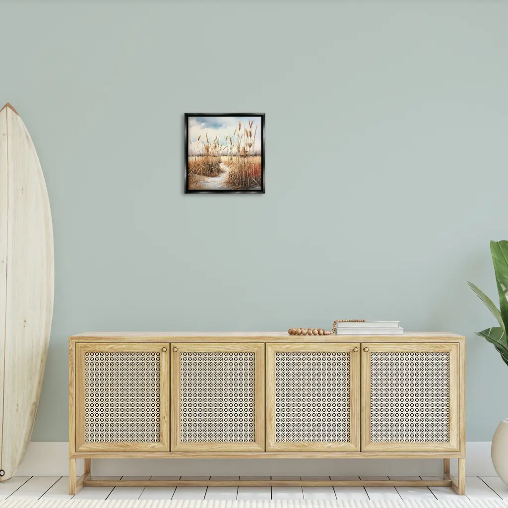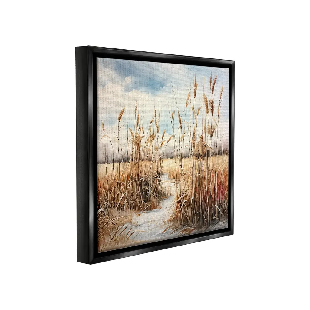 Elevate your home or office to the next level with Stupell Framed Floating Canvas Wall Art. Our premium hand-stretched canvas is mounted securely into a sturdy lightweight frame. The museum-style gap between the wrapped canvas and the box frame gives the illusion of floating artwork. Stupell Wall Art is made in the USA.Features: Dimensions: 18 x 1.7 x 18 Frame, 17 x 1.5 x 17 Canvas ArtFloating Frame Canvas Products are available in sizes 18"x18" and 25"x25". All Floating Frame Canvas Products have a 1.7" Depth.Wall Art is Ready to Hang with Hardware Free Hanging. No Installation required. For Easy Set Up Lean or Layer Artwork on Shelf or Against Wall. Artwork is Permently Fixed into the Frame.Our elevated 1.7" Thick Floating Frame is the perfect complement to our canvas style Wall Art. We use only the highest quality inks in house with industry leading printing solutions. Canvas is hand stretched over a durable wood foundation and then mounted securly into a Modern Box Frame. Made in the USA.Artwork Relates To: Horizon, Sky, Scenery, Beach, Coast, Sea, Shoreline, Coastal, Reeds, TraditionalDesign by RB