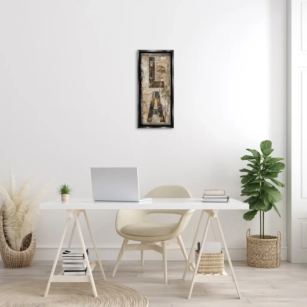 Elevate your home or office to the next level with Stupell Framed Floating Canvas Wall Art. Our premium hand-stretched canvas is mounted securely into a sturdy lightweight frame. The museum-style gap between the wrapped canvas and the box frame gives the illusion of floating artwork. Stupell Wall Art is made in the USA.Features: Dimensions: 11 x 1.7 x 25 Frame, 10 x 1.5 x 24 Canvas ArtFloating Frame Canvas Products are available in sizes 11"x25" and 14"x31". All Floating Frame Canvas Products have a 1.7" Depth.Wall Art is Ready to Hang with Hardware Free Hanging. No Installation required. For Easy Set Up Lean or Layer Artwork on Shelf or Against Wall. Artwork is Permently Fixed into the Frame.Our elevated 1.7" Thick Floating Frame is the perfect complement to our canvas style Wall Art. We use only the highest quality inks in house with industry leading printing solutions. Canvas is hand stretched over a durable wood foundation and then mounted securly into a Modern Box Frame. Made in the USA.Artwork Relates To: Rustic, Urban, Industrial, City, Letters, LADesign by Luke Wilson