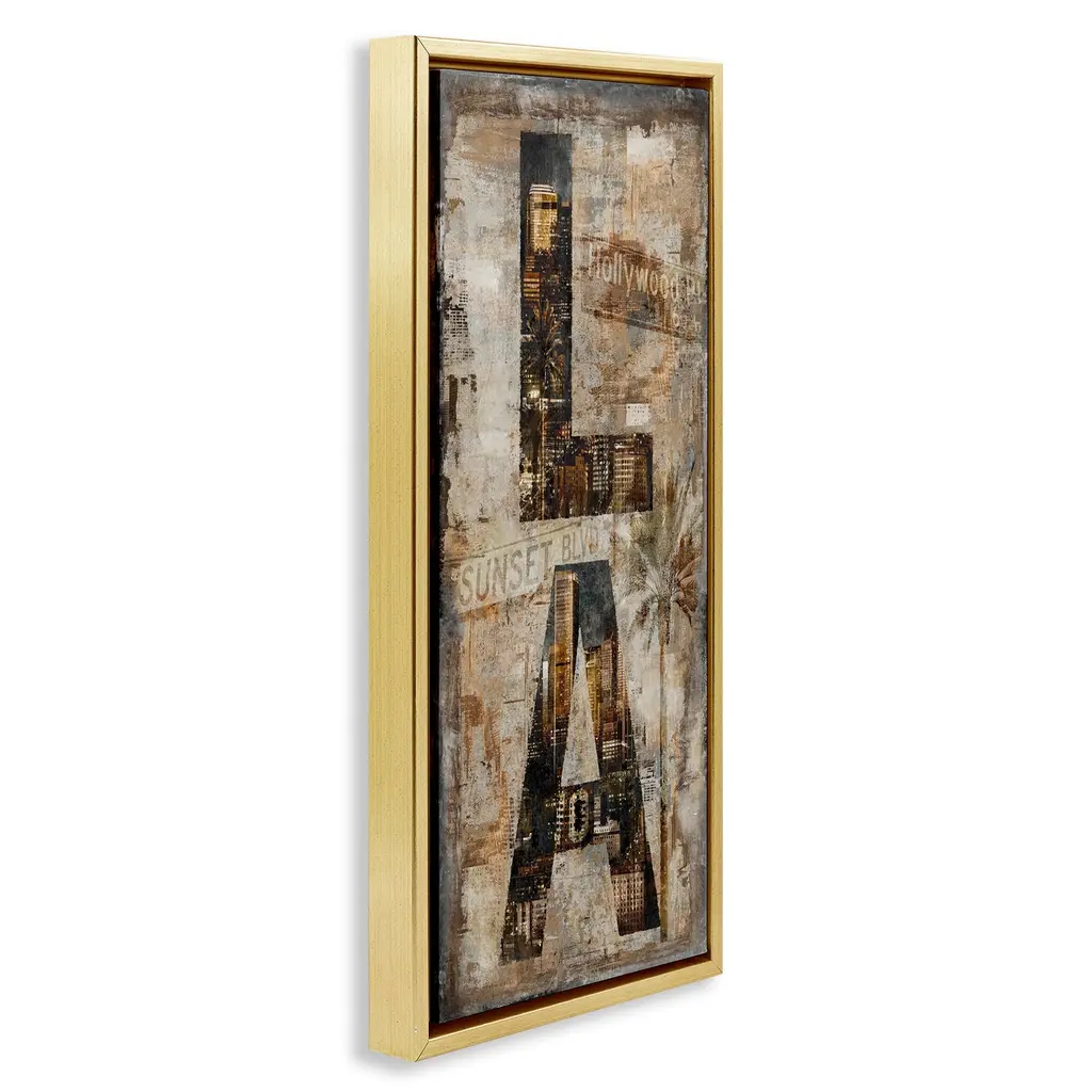 Elevate your home or office to the next level with Stupell Framed Floating Canvas Wall Art. Our premium hand-stretched canvas is mounted securely into a sturdy lightweight frame. The museum-style gap between the wrapped canvas and the box frame gives the illusion of floating artwork. Stupell Wall Art is made in the USA.Features: Dimensions: 11 x 1.7 x 25 Frame, 10 x 1.5 x 24 Canvas ArtFloating Frame Canvas Products are available in sizes 11"x25" and 14"x31". All Floating Frame Canvas Products have a 1.7" Depth.Wall Art is Ready to Hang with Hardware Free Hanging. No Installation required. For Easy Set Up Lean or Layer Artwork on Shelf or Against Wall. Artwork is Permently Fixed into the Frame.Our elevated 1.7" Thick Floating Frame is the perfect complement to our canvas style Wall Art. We use only the highest quality inks in house with industry leading printing solutions. Canvas is hand stretched over a durable wood foundation and then mounted securly into a Modern Box Frame. Made in the USA.Artwork Relates To: Rustic, Urban, Industrial, City, Letters, LADesign by Luke Wilson