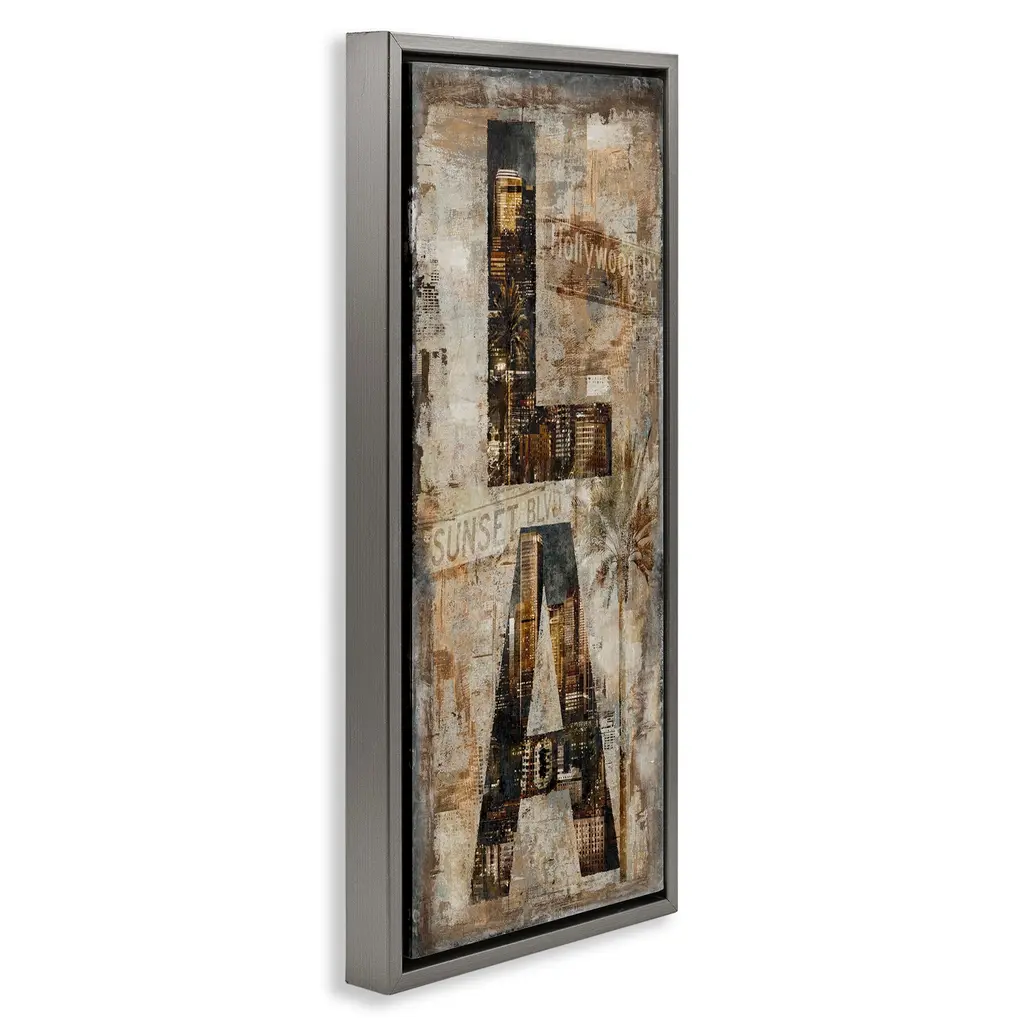 Elevate your home or office to the next level with Stupell Framed Floating Canvas Wall Art. Our premium hand-stretched canvas is mounted securely into a sturdy lightweight frame. The museum-style gap between the wrapped canvas and the box frame gives the illusion of floating artwork. Stupell Wall Art is made in the USA.Features: Dimensions: 11 x 1.7 x 25 Frame, 10 x 1.5 x 24 Canvas ArtFloating Frame Canvas Products are available in sizes 11"x25" and 14"x31". All Floating Frame Canvas Products have a 1.7" Depth.Wall Art is Ready to Hang with Hardware Free Hanging. No Installation required. For Easy Set Up Lean or Layer Artwork on Shelf or Against Wall. Artwork is Permently Fixed into the Frame.Our elevated 1.7" Thick Floating Frame is the perfect complement to our canvas style Wall Art. We use only the highest quality inks in house with industry leading printing solutions. Canvas is hand stretched over a durable wood foundation and then mounted securly into a Modern Box Frame. Made in the USA.Artwork Relates To: Rustic, Urban, Industrial, City, Letters, LADesign by Luke Wilson