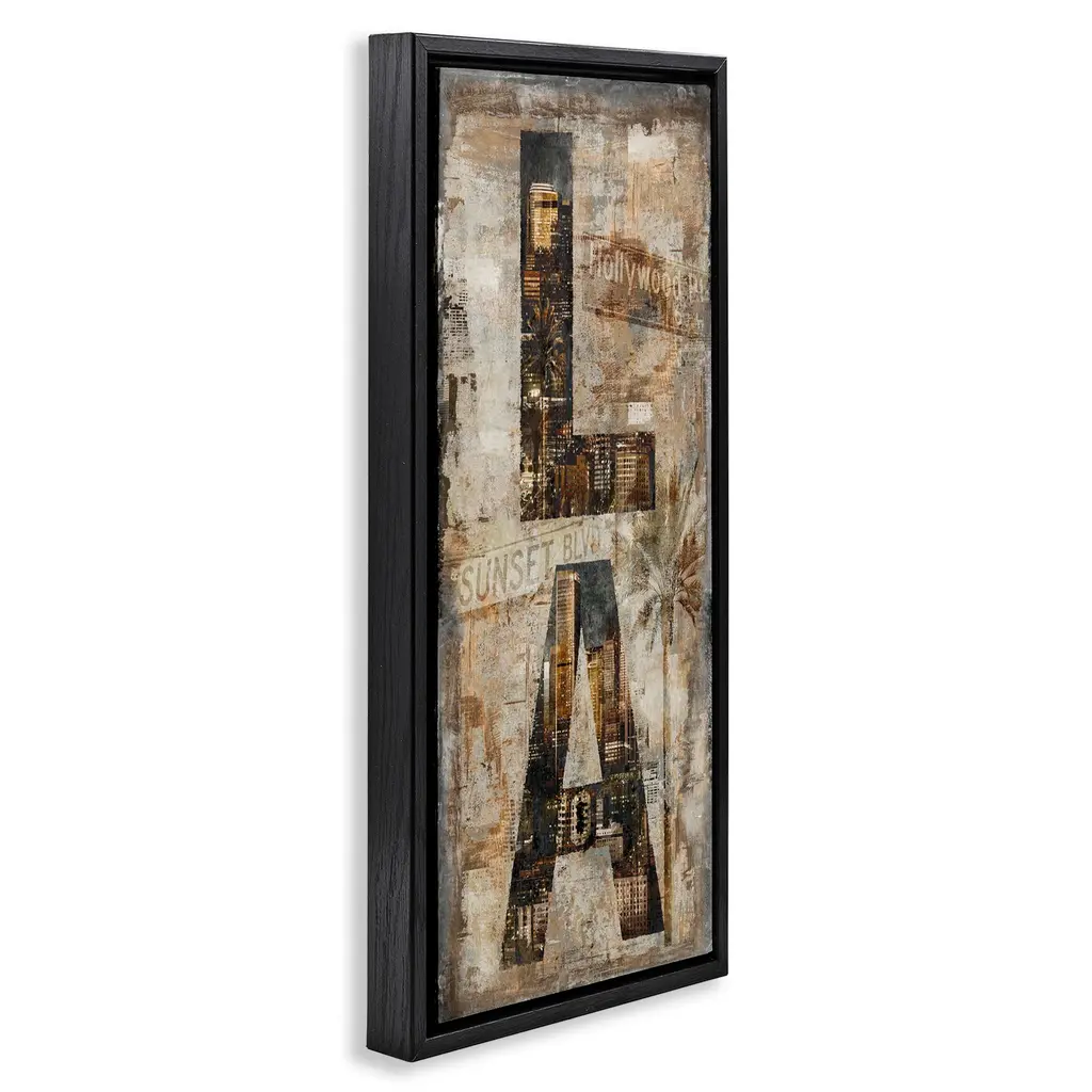 Elevate your home or office to the next level with Stupell Framed Floating Canvas Wall Art. Our premium hand-stretched canvas is mounted securely into a sturdy lightweight frame. The museum-style gap between the wrapped canvas and the box frame gives the illusion of floating artwork. Stupell Wall Art is made in the USA.Features: Dimensions: 11 x 1.7 x 25 Frame, 10 x 1.5 x 24 Canvas ArtFloating Frame Canvas Products are available in sizes 11"x25" and 14"x31". All Floating Frame Canvas Products have a 1.7" Depth.Wall Art is Ready to Hang with Hardware Free Hanging. No Installation required. For Easy Set Up Lean or Layer Artwork on Shelf or Against Wall. Artwork is Permently Fixed into the Frame.Our elevated 1.7" Thick Floating Frame is the perfect complement to our canvas style Wall Art. We use only the highest quality inks in house with industry leading printing solutions. Canvas is hand stretched over a durable wood foundation and then mounted securly into a Modern Box Frame. Made in the USA.Artwork Relates To: Rustic, Urban, Industrial, City, Letters, LADesign by Luke Wilson