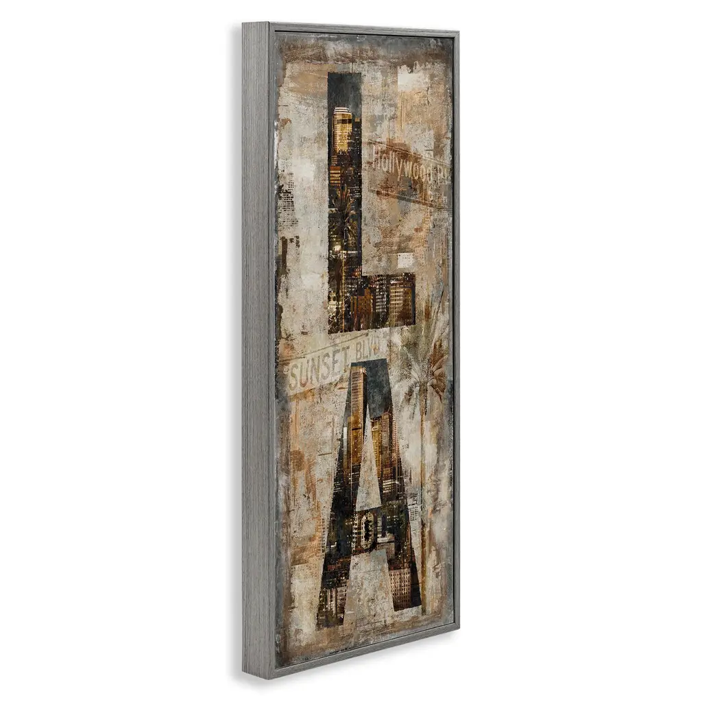 Add dimension to any room with our textured Framed Giclee Artwork. Our framed artwork is securely mounted into a 1.5-inch thick wood grain frame and ready to hang. Frames are available in three alluring styles: black, gray farmhouse and white. In addition, you should check out our oversized options if you want a statement piece. Stupell Wall Art is made in the USA.Features: Dimensions: 10 x 1.5 x 24 FramedFramed Giclee Product Sizes include 10"x24" and 13"x30". All Framed Giclee products have a 1.5" Depth.Wall Art is Ready to Hang with Hardware Free Hanging. No installation required. For Easy Set Up Lean or Layer Artwork on Shelf or Against Wall.Our giclée prints are carefully mounted on a durable MDF backing, and then perfectly finished in a 1.5 inch thick woodgrain frame. Mounted frame colors include black, gray farmhouse and white. Made In USA.Artwork Relates To: Rustic, Urban, Industrial, City, Letters, LADesign by Luke Wilson