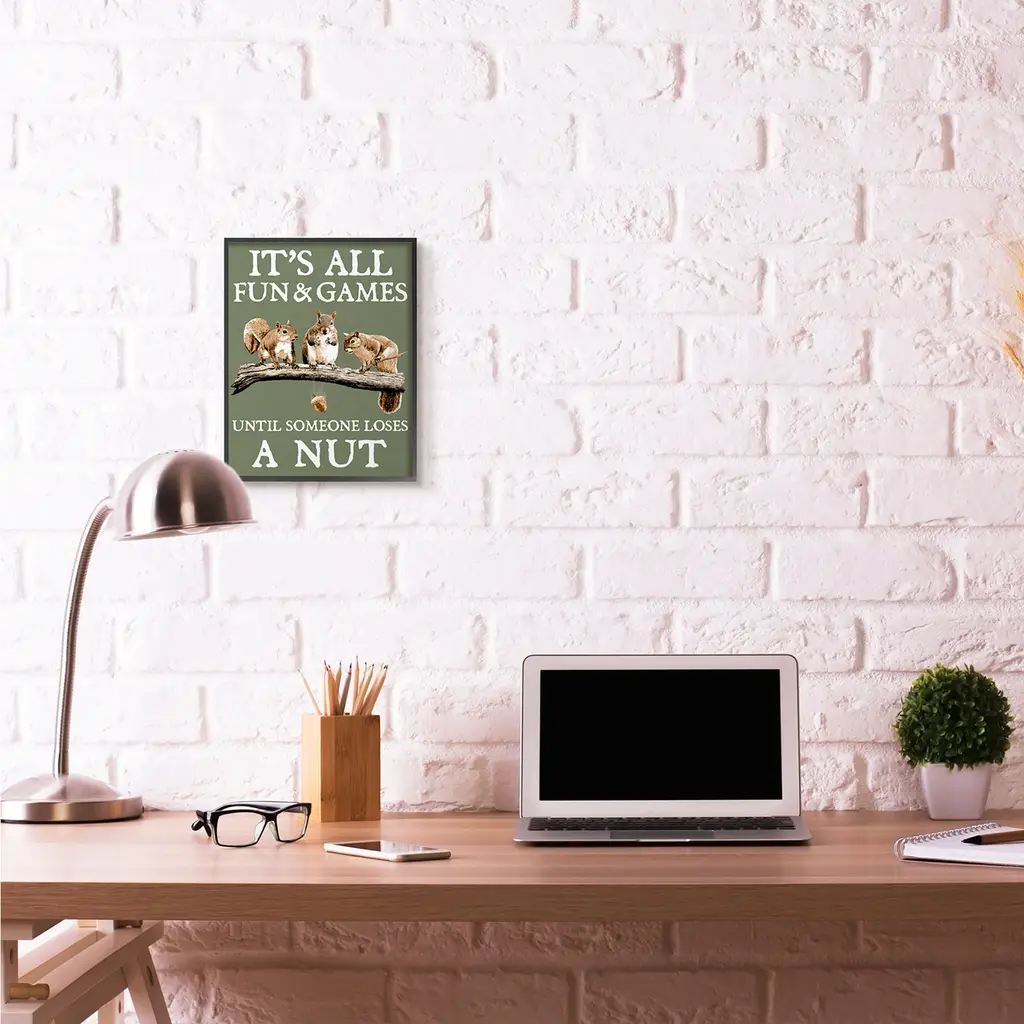 Stupell Loses A Nut Funny Squirrel Animal Word Design Framed Wall Art - 24 X 30