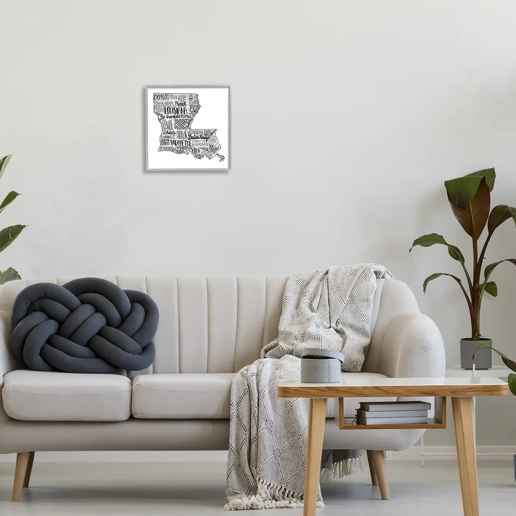 Stupell Louisiana State Map Typography Cities Framed Giclee Texturized Wall Art, Design By The Saturday Evening Post - 12 X 12 - Grey
