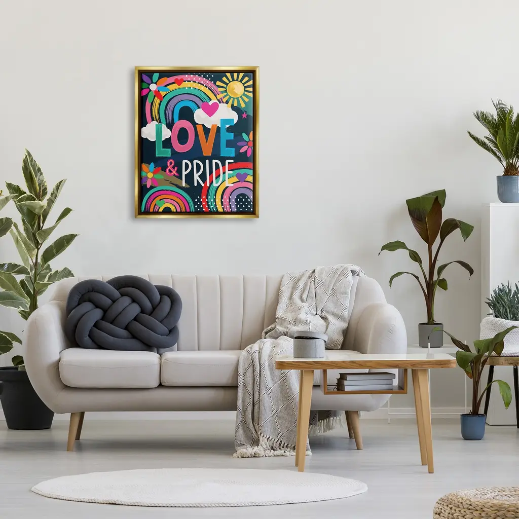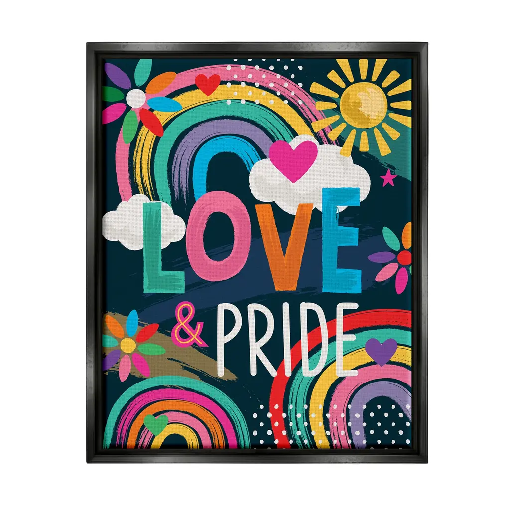 Elevate your home or office to the next level with Stupell Framed Floating Canvas Wall Art. Our premium hand-stretched canvas is mounted securely into a sturdy lightweight frame. The museum-style gap between the wrapped canvas and the box frame gives the illusion of floating artwork. Stupell Wall Art is made in the USA.Features: Dimensions: 17 x 1.7 x 21 Frame, 16 x 1.5 x 20 Canvas ArtFloating Frame Sizes Include Standard: 17 x 1.7 x 21 Oversized: 25 x 1.7 x 31Wall Art is Ready to Hang - No Installation or Hardware Needed. For Easy Set Up Lean or Layer Artwork on Shelf or Against Wall.Our elevated 1.7" Thick Floating Frame is the perfect complement to our canvas style Wall Art. We use only the highest quality inks in house with industry leading printing solutions. Canvas is hand stretched over a durable wood foundation and then mounted securly into a Modern Box Frame. Made in the USA.Artwork Relates To: Rainbow, LGBTQ+, Pride, Nature, Sun, Flower, Love & PrideDesign by Lisa Perry Whitebutton