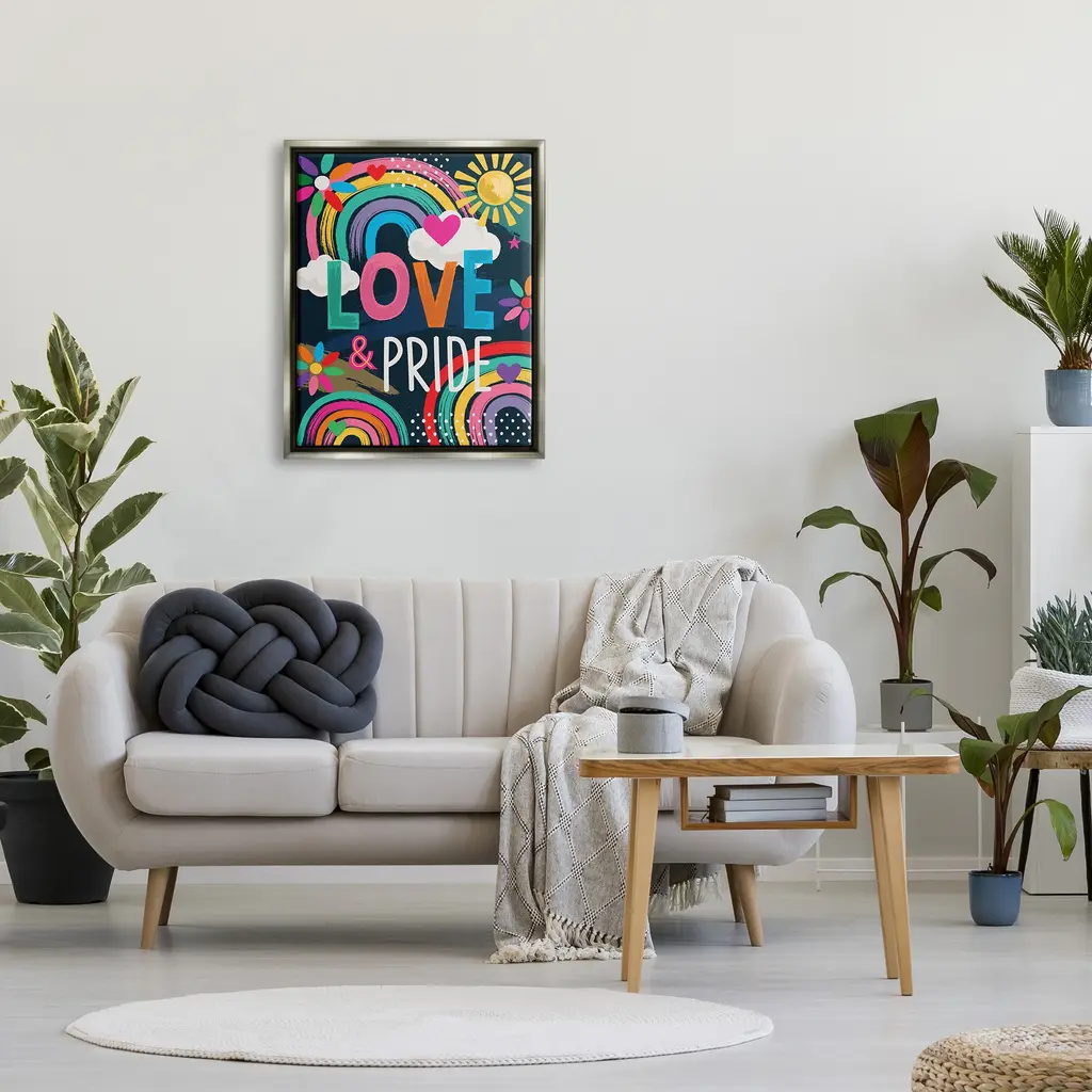Elevate your home or office to the next level with Stupell Framed Floating Canvas Wall Art. Our premium hand-stretched canvas is mounted securely into a sturdy lightweight frame. The museum-style gap between the wrapped canvas and the box frame gives the illusion of floating artwork. Stupell Wall Art is made in the USA.Features: Dimensions: 17 x 1.7 x 21 Frame, 16 x 1.5 x 20 Canvas ArtFloating Frame Sizes Include Standard: 17 x 1.7 x 21 Oversized: 25 x 1.7 x 31Wall Art is Ready to Hang - No Installation or Hardware Needed. For Easy Set Up Lean or Layer Artwork on Shelf or Against Wall.Our elevated 1.7" Thick Floating Frame is the perfect complement to our canvas style Wall Art. We use only the highest quality inks in house with industry leading printing solutions. Canvas is hand stretched over a durable wood foundation and then mounted securly into a Modern Box Frame. Made in the USA.Artwork Relates To: Rainbow, LGBTQ+, Pride, Nature, Sun, Flower, Love & PrideDesign by Lisa Perry Whitebutton