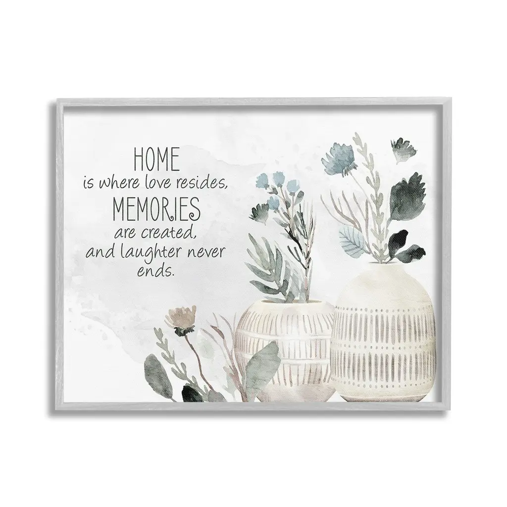 Add dimension to any room with our textured Framed Giclee Artwork. Our framed artwork is securely mounted into a 1.5-inch thick wood grain frame and ready to hang. Frames are available in three alluring styles: black, gray farmhouse and white. In addition, you should check out our oversized options if you want a statement piece. Stupell Wall Art is made in the USA.Features: Dimensions: 14 x 1.5 x 11 FramedFramed Giclee Products are available in the sizes 14"x11", 20"x16" or 30"x24". All Framed Giclee Products have a 1.5" Depth. Wall Art is Ready to Hang with Hardware Free Hanging. No installation required. For Easy Set Up Lean or Layer Artwork on Shelf or Against Wall.Our giclée prints are carefully mounted on a durable MDF backing, and then perfectly finished in a 1.5 inch thick woodgrain frame. Mounted frame colors include black, gray farmhouse and white. Made In USA.Artwork Relates To: Herbs, Plant, Floral, Flower, Vase, Pottery, Bouquet, Uplifting, Inspirational, Home is Life Takes Us to Unexpected Places Love Brings Us HomeDesign by Kim Allen