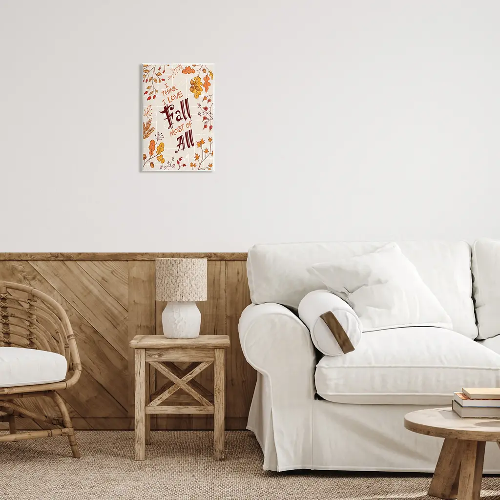 Our wall plaques start as high-quality lithograph prints mounted on durable 0.5-inch thick MDF wood. Each piece is hand finished and comes with a fresh layer of white foil on the sides to give it a crisp, clean look. Plaques arrive ready to hang without installation and come with removable plastic corners to keep them from damage in transit. Wall Art is made in the USA.Features: Dimensions: 10 x 0.5 x 15 InchesWall Plaque Sizes Include Standard: 10 x 0.5 x 15 Oversized: 13 x 0.5 x 19Wall Art is Ready to Hang with Hardware Free Hanging. No installation required. For Easy Set Up Lean or Layer Artwork on Shelf or Against Wall.All of our wall plaques start off as high quality lithograph prints that are then mounted on durable 0.5 inch thick MDF wood. Each piece is hand finished and comes with a fresh layer of foil on the sides to give it a crisp clean look. Made In USA.Artwork Relates To: Leaf, Plant, Fall, Seasonal, Acorn, I Think I Love Fall Most of AllDesign by Diane Labombarbe