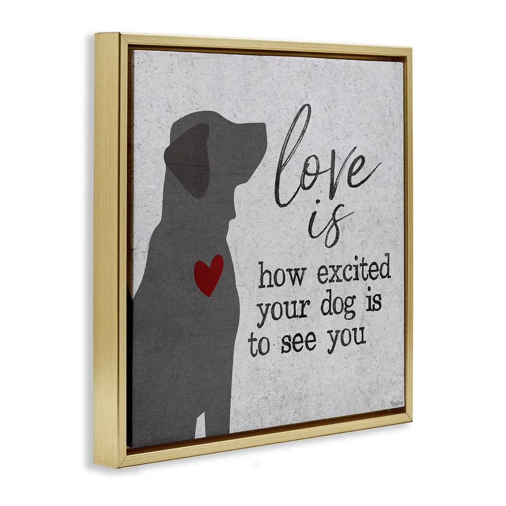 Stupell Love Is Excited Dog Pet Phrase Framed Floater Canvas Wall Art Design By Gigi Louise - 18 X 18 - Gold