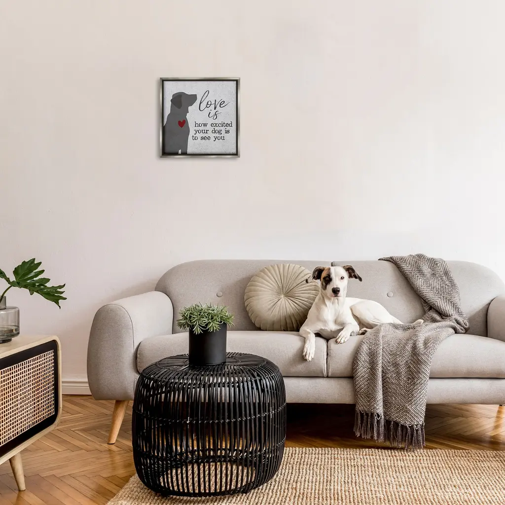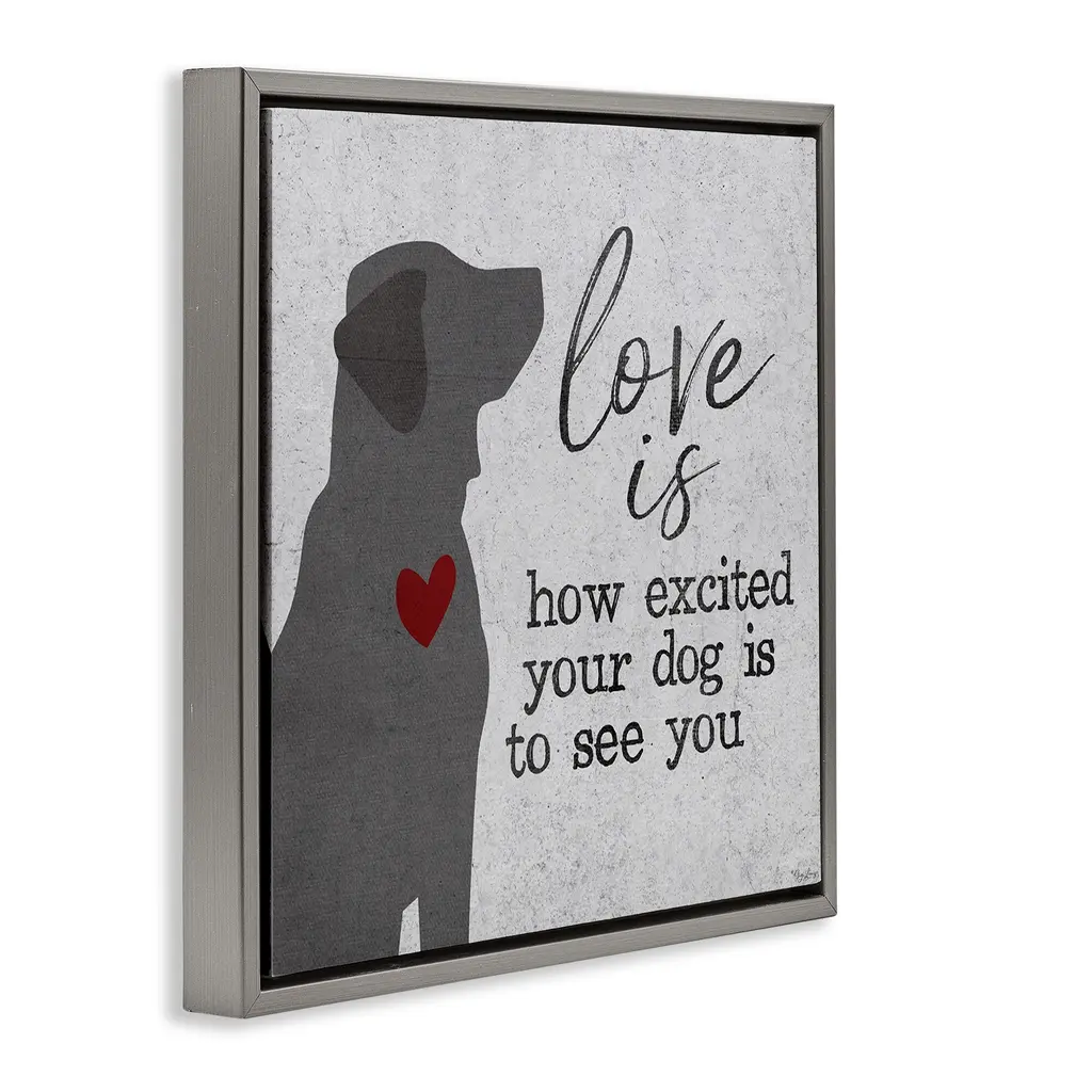 Stupell Love Is Excited Dog Pet Phrase Framed Floater Canvas Wall Art Design By Gigi Louise - 18 X 18 - Grey