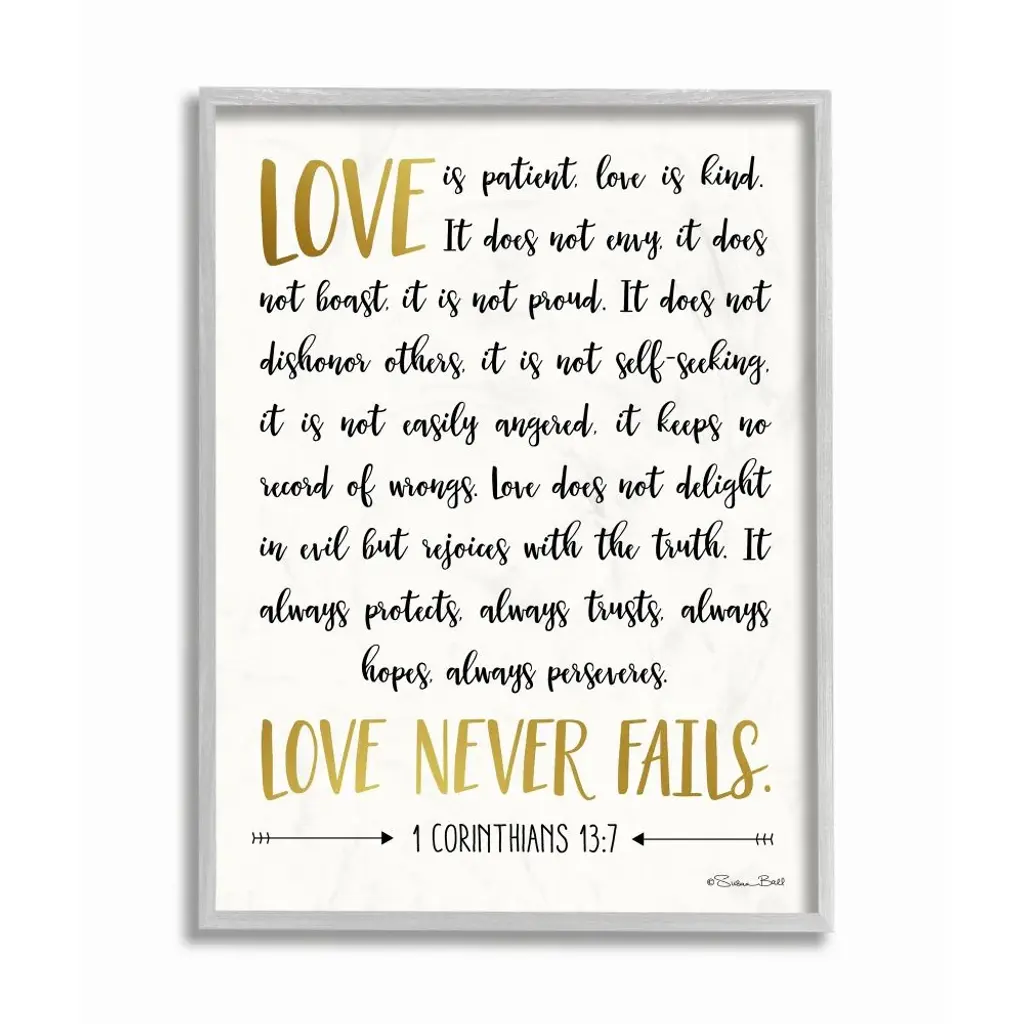 Stupell Love Is Patient Psalm Faith Based Word Design Framed Giclee Texturized Art By Susan Ball - 16 X 20 - Grey